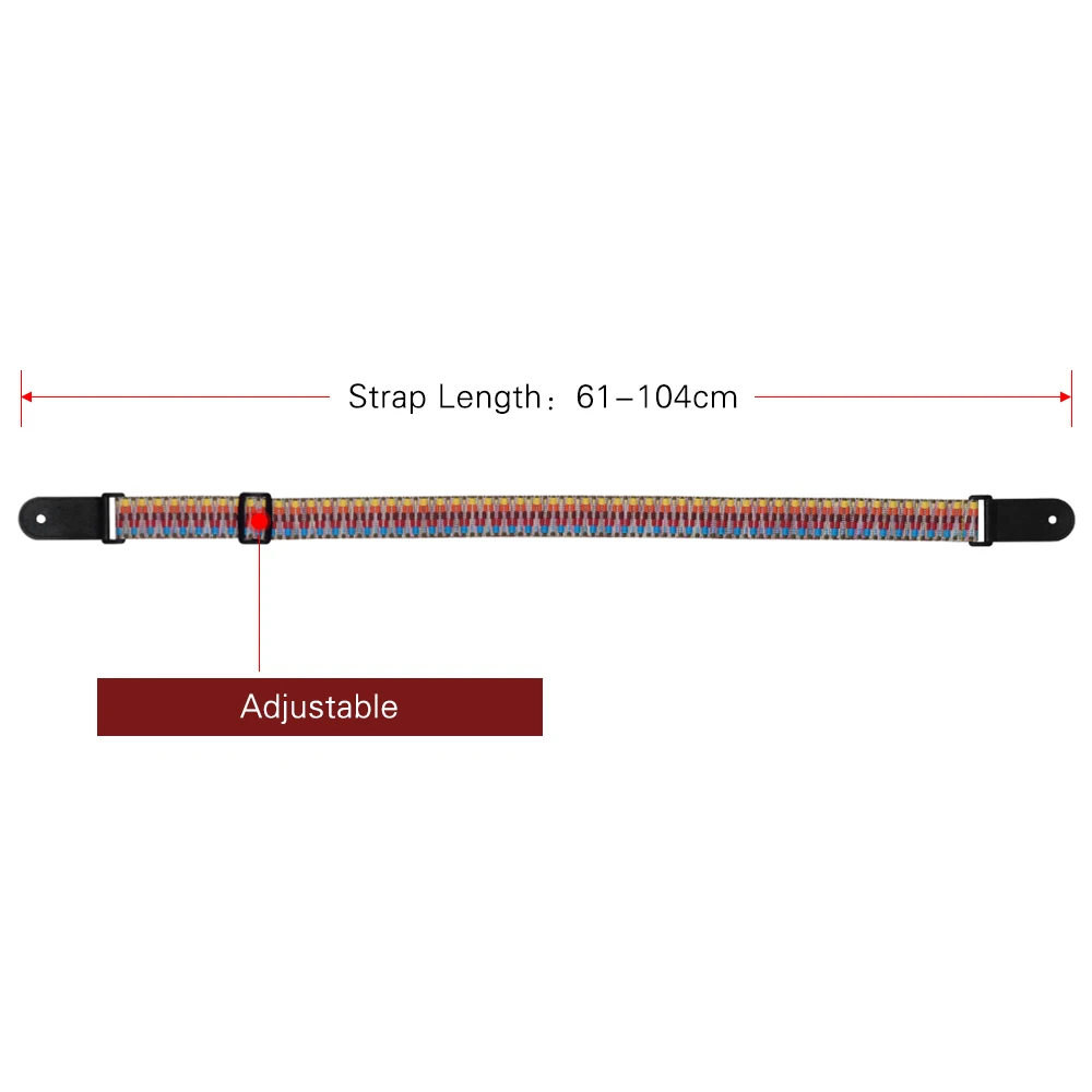 Особенности: Универсальная совместимость, подходит для большинства ukuleles. 3,8 см в ширину и 61-104 см в длину, подходит для детей и взрослых. Полиэфирный ремешок и концы из коровьей кожи, прочные и долговечные, гарантирующие долгий срок службы. Мягкие и гладкие, удобные в носке, что дает вам большой опыт использования. Специальный принт, стильный дизайн, тонкое мастерство, идеальный аксессуар для гитары, хороший подарок для любителей укулеле. Характеристики: Материал: полиэстер и кожа Ремень Ширина: 3,8 см/1,49 дюйма Длина ремешка: 61-104 см/24,01-40,94 дюйма Вес ремешка: 50 г/1,76 унций Посылка Размеры: 16*6*5 см/6,29*2,36*1,96 дюймов Вес посылка: 60 г/2,11 унций Посылка: 1 * ремешок 1 * подвесная веревка