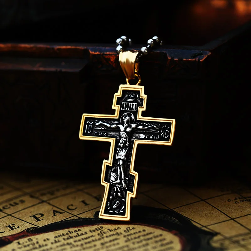 Стальной солдатский Крест Иисуса Мужская нержавеющая сталь распятие восточные ортодоксальные цепочки ожерелье ювелирные изделия