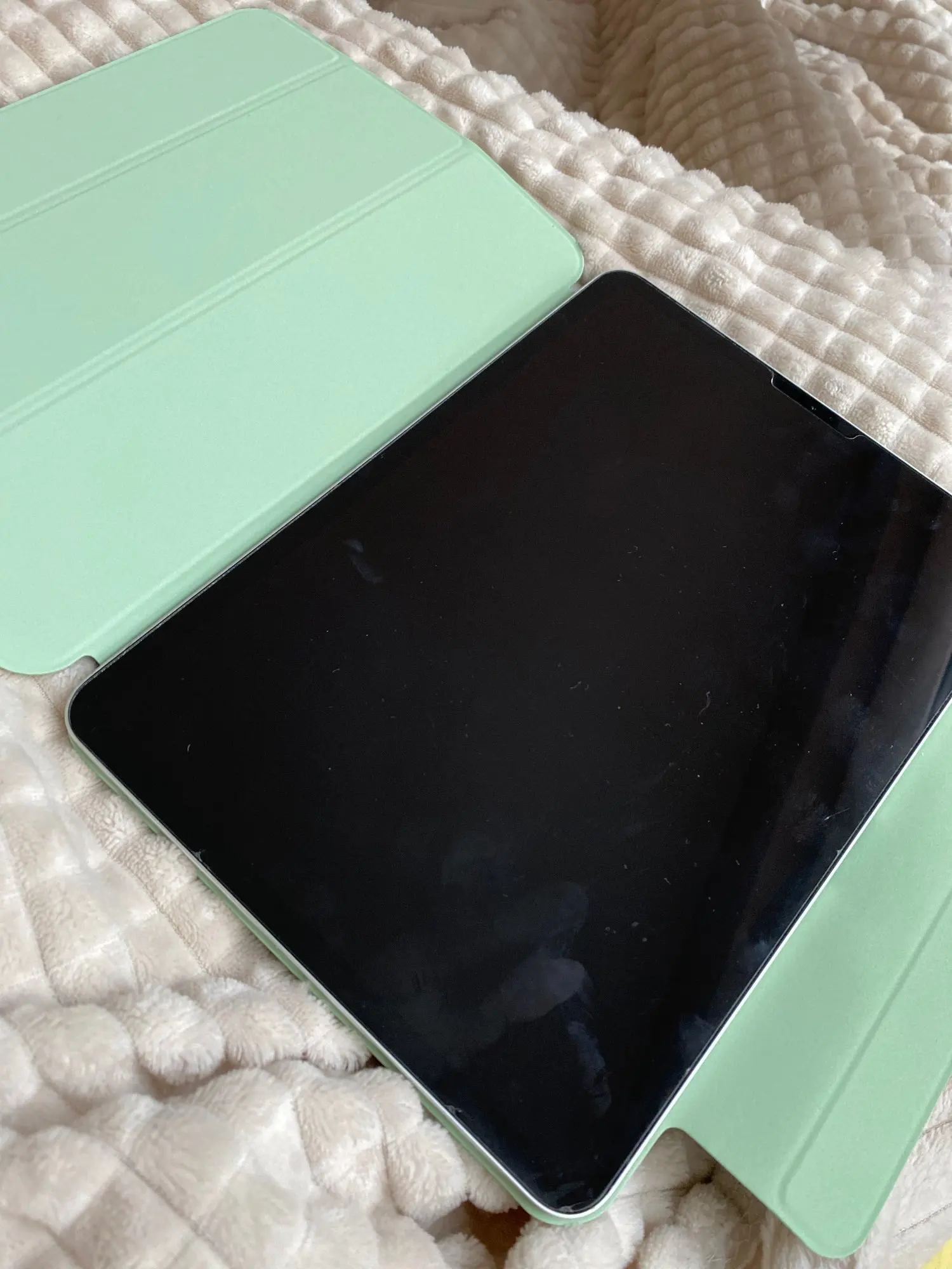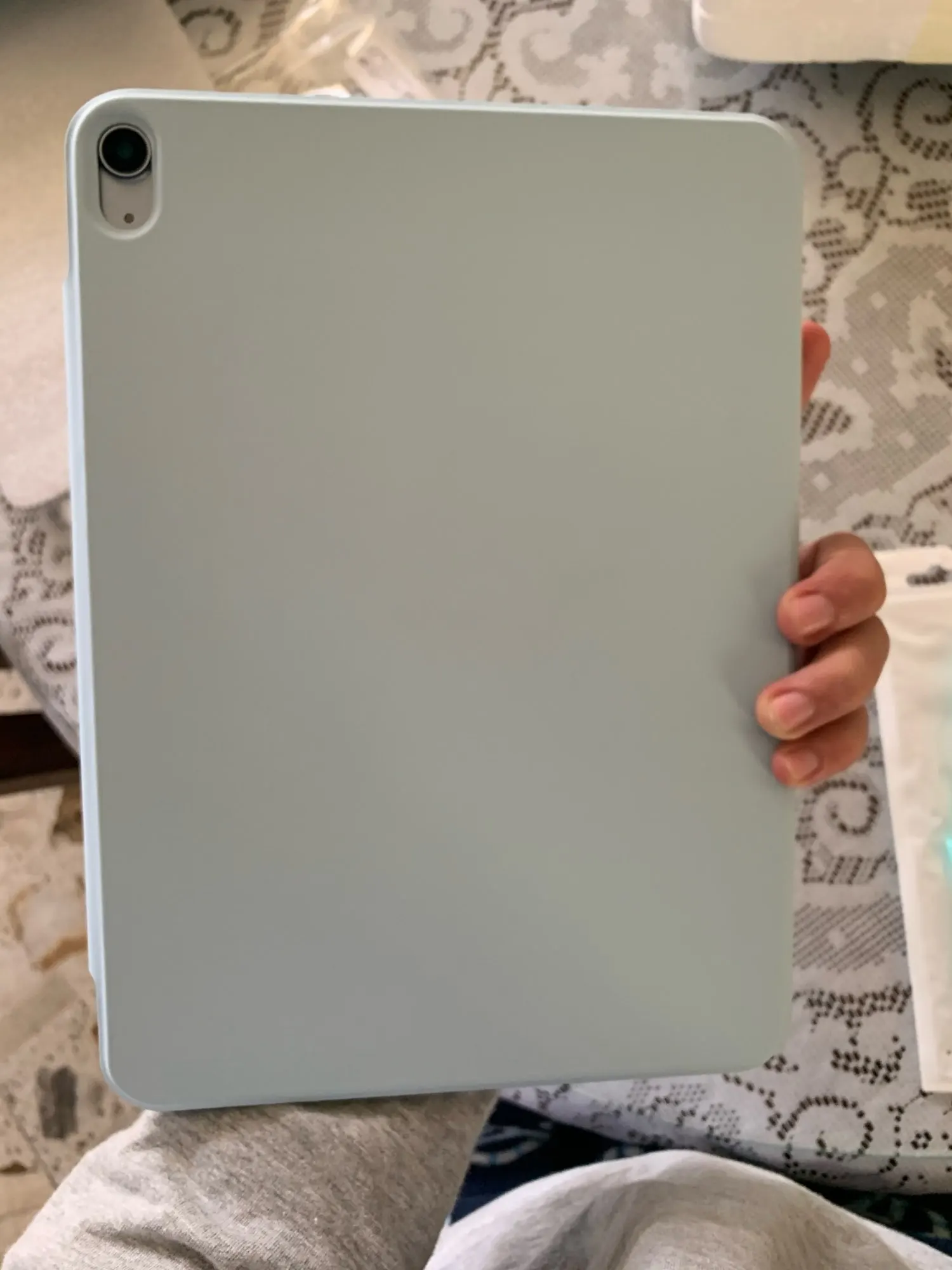 Очень доволен порошковым синим чехлом для iPad Pro. В прекрасном состоянии, никаких царапин или следов на нем. Цвет-красивый светло-голубой оттенок. Лучше всего, чехол идеально подходит. Плюс! Спасибо!