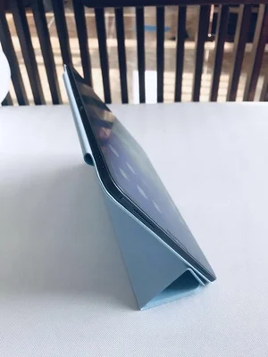 Cover bellissima, le calamite sono abbastanza forti quindi il tablet si tiene bene (non avendo supporti laterali). Rimane sottile ma ben resistente, molto molto delicata. Arrivata in tempi brevissimi!