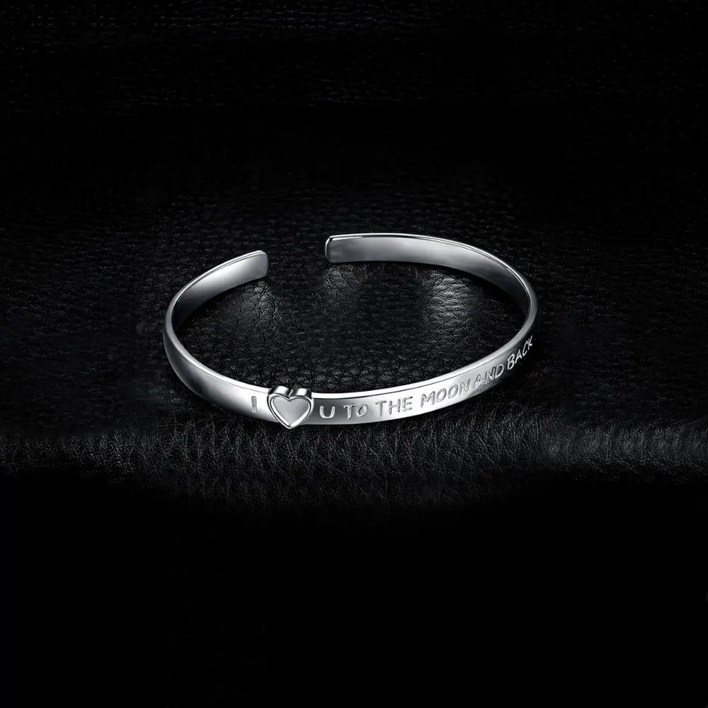 Стройный Серебро Браслет-манжета с гравировкой любовное сообщение "I love you to the moonAnd back ", Сентиментальный подарок для любимого человека.