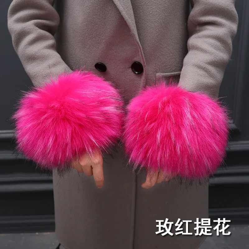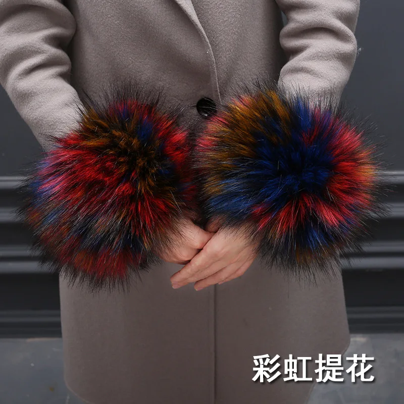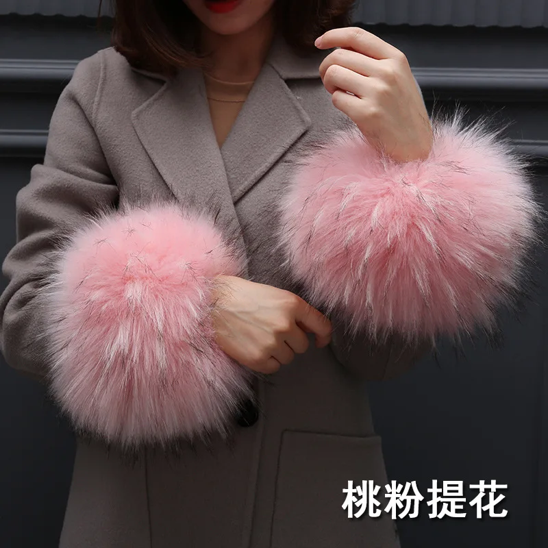 Qearlstar Модные 100% Высококачественные Женские меховые наручные зимние теплые манжеты из искусственного меха енота эластичные браслеты на руку браслет с меховыми элементами
