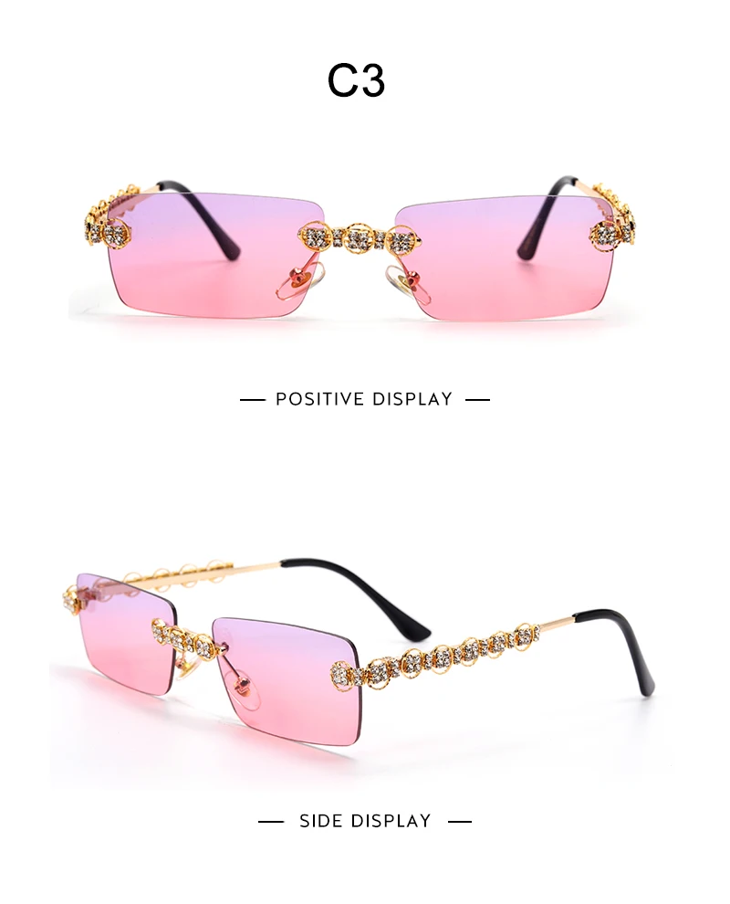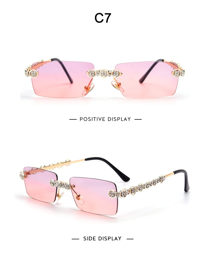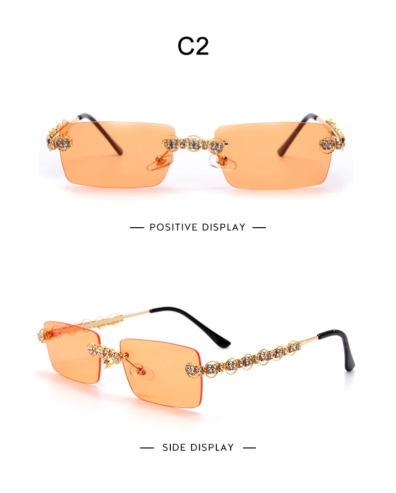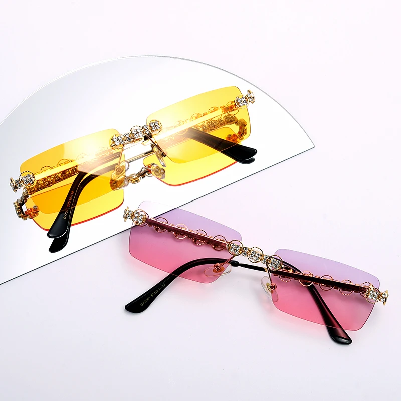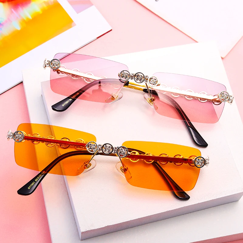 Женские солнцезащитные очки в стиле ретро, брендовые дизайнерские солнцезащитные очки без оправы с бриллиантами, стразы, женские очки без оправы, 2020