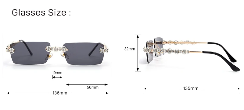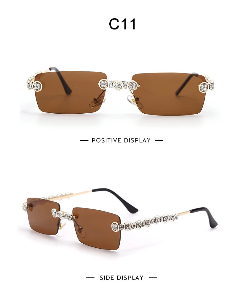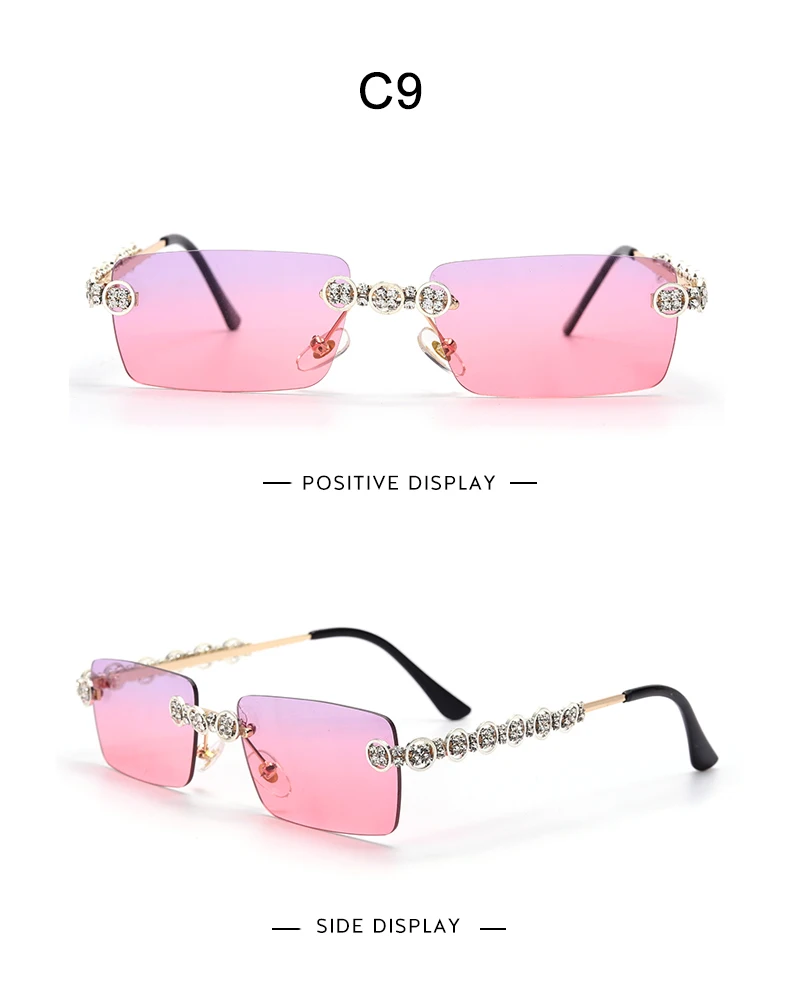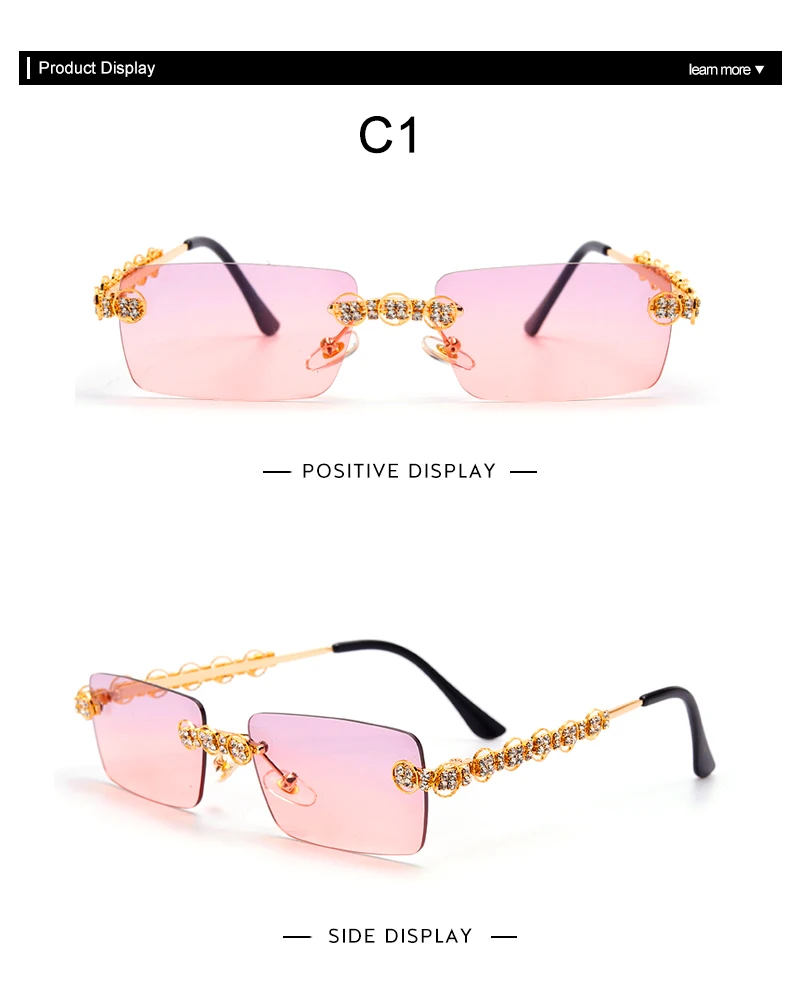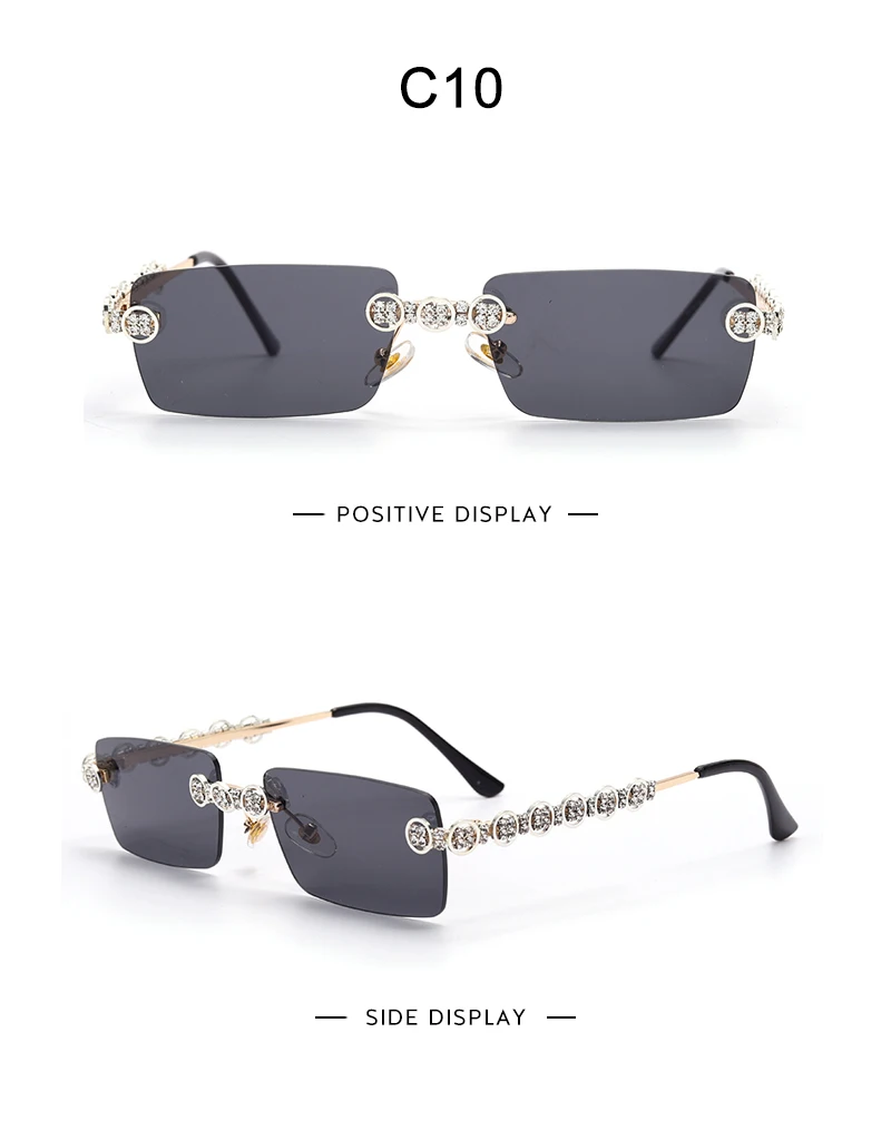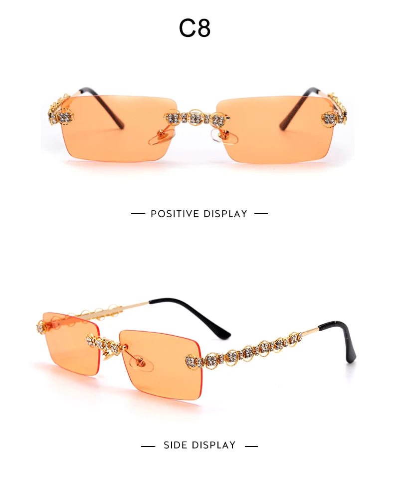 Женские солнцезащитные очки в стиле ретро, брендовые дизайнерские солнцезащитные очки без оправы с бриллиантами, стразы, женские очки без оправы, 2020