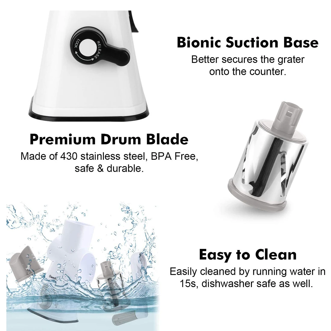 Терка вращающийся сырный, 3 барабанные ножи, ручная овощерезка, изм...