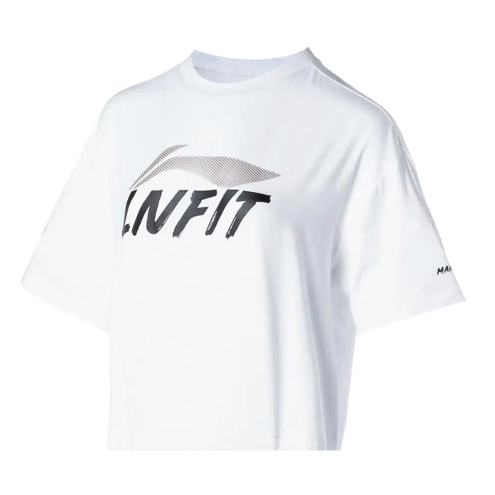 Li-Ning Для женщин футболки для тренировок свободные 57.5% хлопок 37.5% Модал 5% спандекс подкладка Ли Нин Спортивные укороченные топы ATSQ036