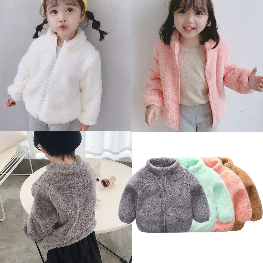 Новое модное пальто для маленьких мальчиков и девочек, зимнее, Осеннее, теплое, Однотонное шерстяное пальто на молнии, новая модная модель
