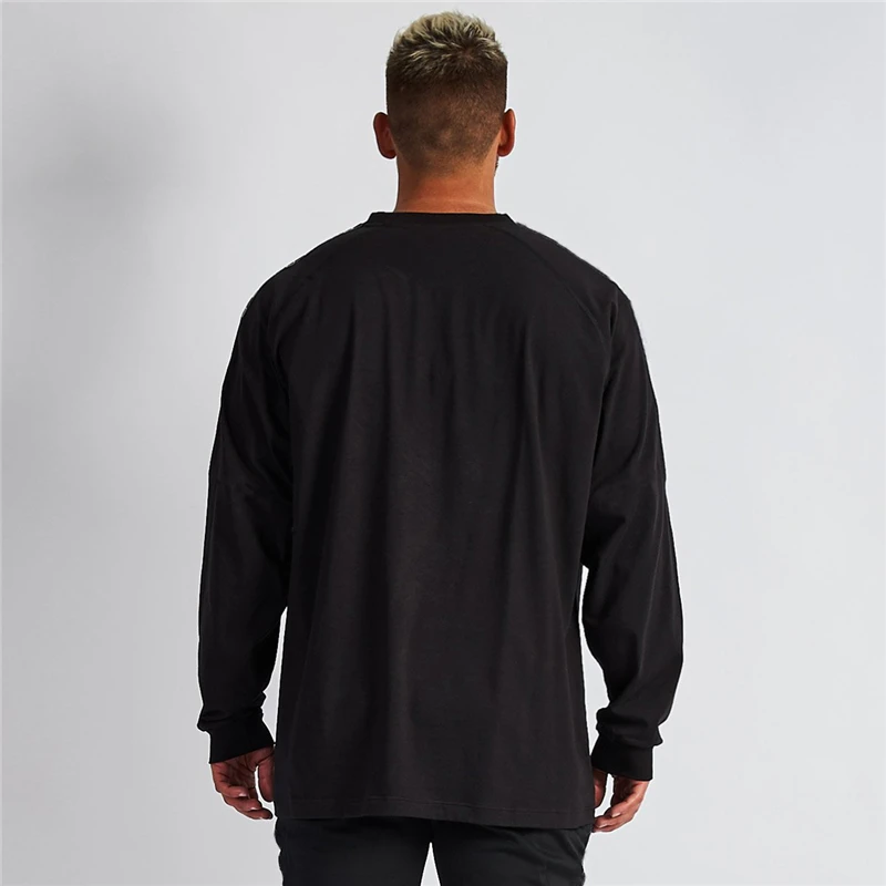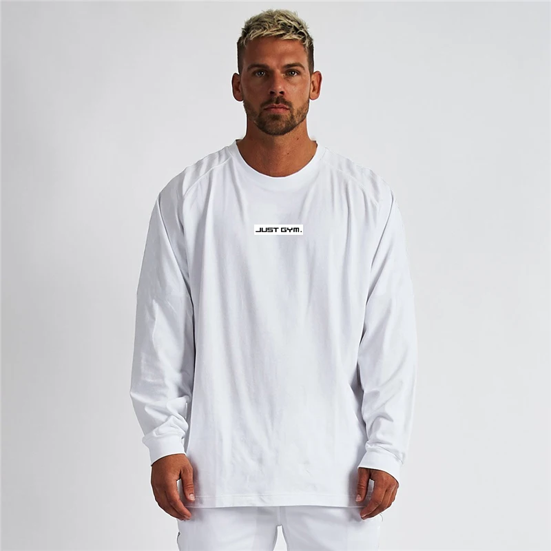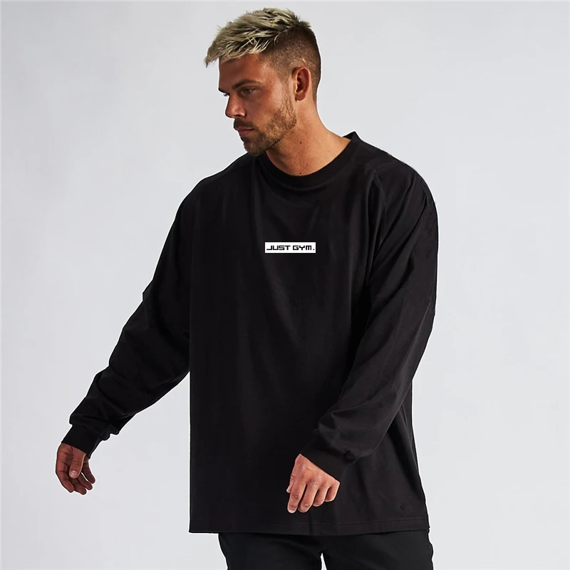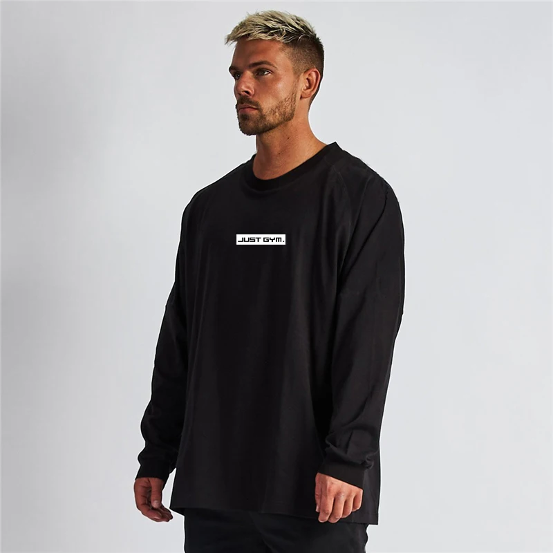 Мужская одежда для спортзала 100% хлопок осень и весна Модная Повседневная футболка с длинным рукавом Топы для бодибилдинга футболки с принтом