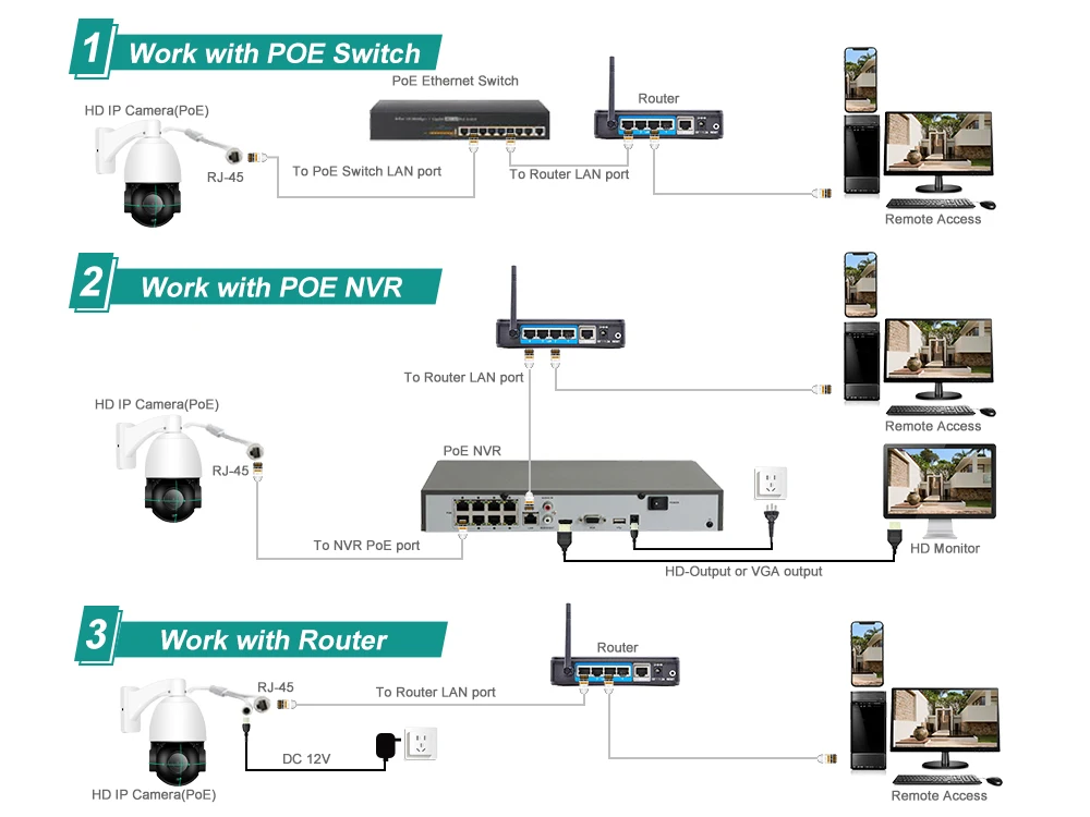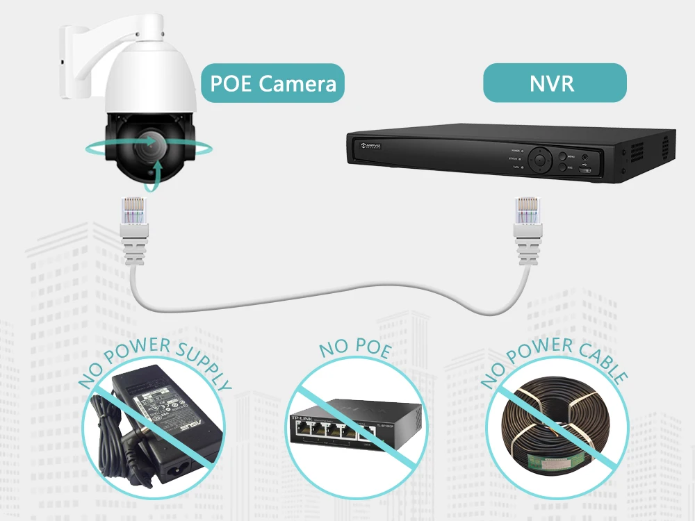 Настоящая система безопасности подключи и играй! Сетевой кабель решает источник питания, заменяет источник питания и коммутатор poe. Один сетевой кабель может завершить установку, что делает подключение более трудным.