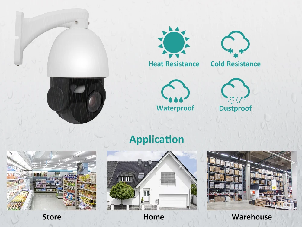 Наша камера подходит как для наружного, так и для внутреннего использования. IP66 Всепогодный Дизайн для использования в нескольких сценариях (офис, улица, дом, фабрика, maket и т. Д.). Рабочая температура камеры:-25 °C ~ 50 °C (-13 ℉ ~ 122 ℉)