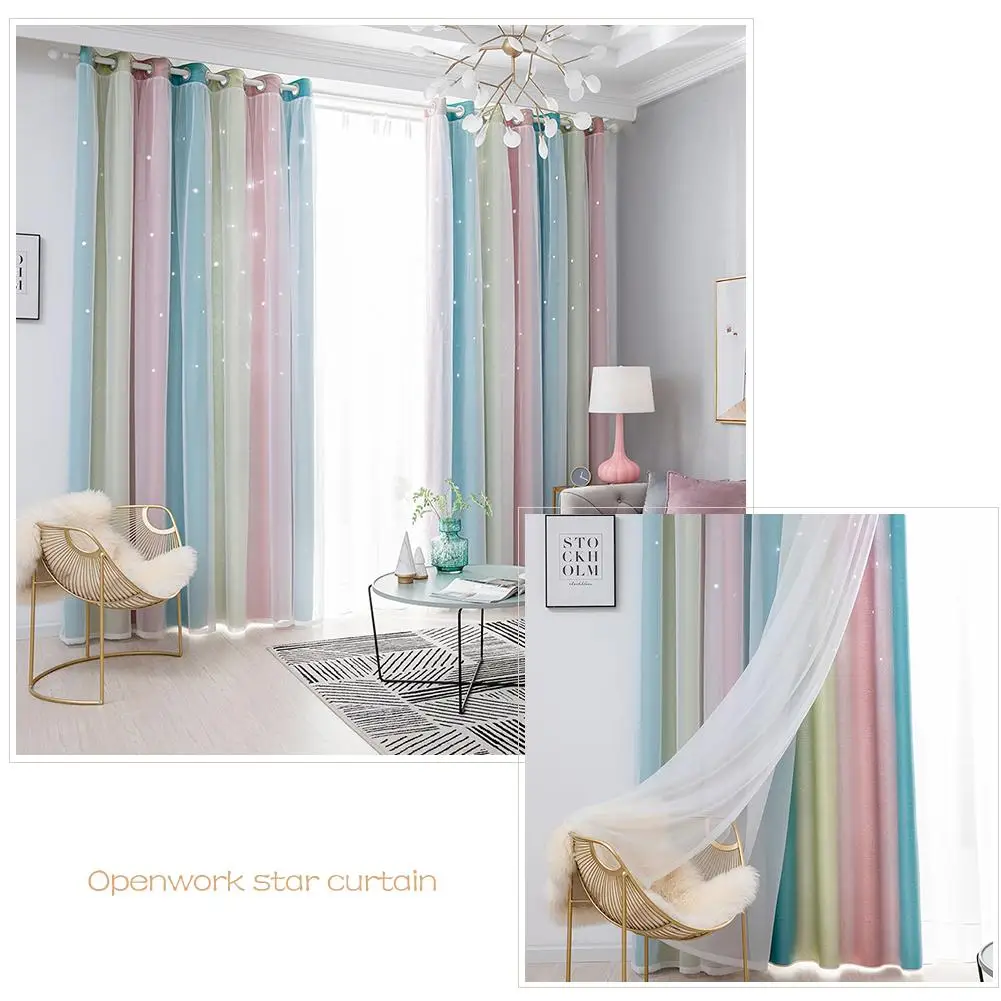 Занавеска для окна, с ажурными звездами, радужного цвета, для девоч...