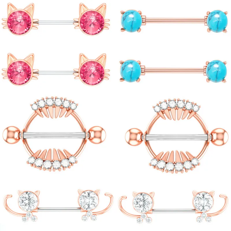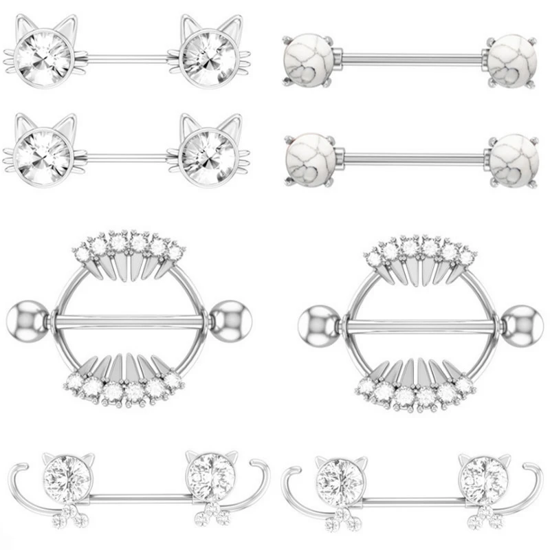 Хирургическая Сталь милый кот ниппель набор для пирсинга 14G с украшением в виде кристаллов ниппель кольцо оптом зубы Сексуальная Ювелирное Украшение для пирсинга соска лот, ювелирное изделие для тела