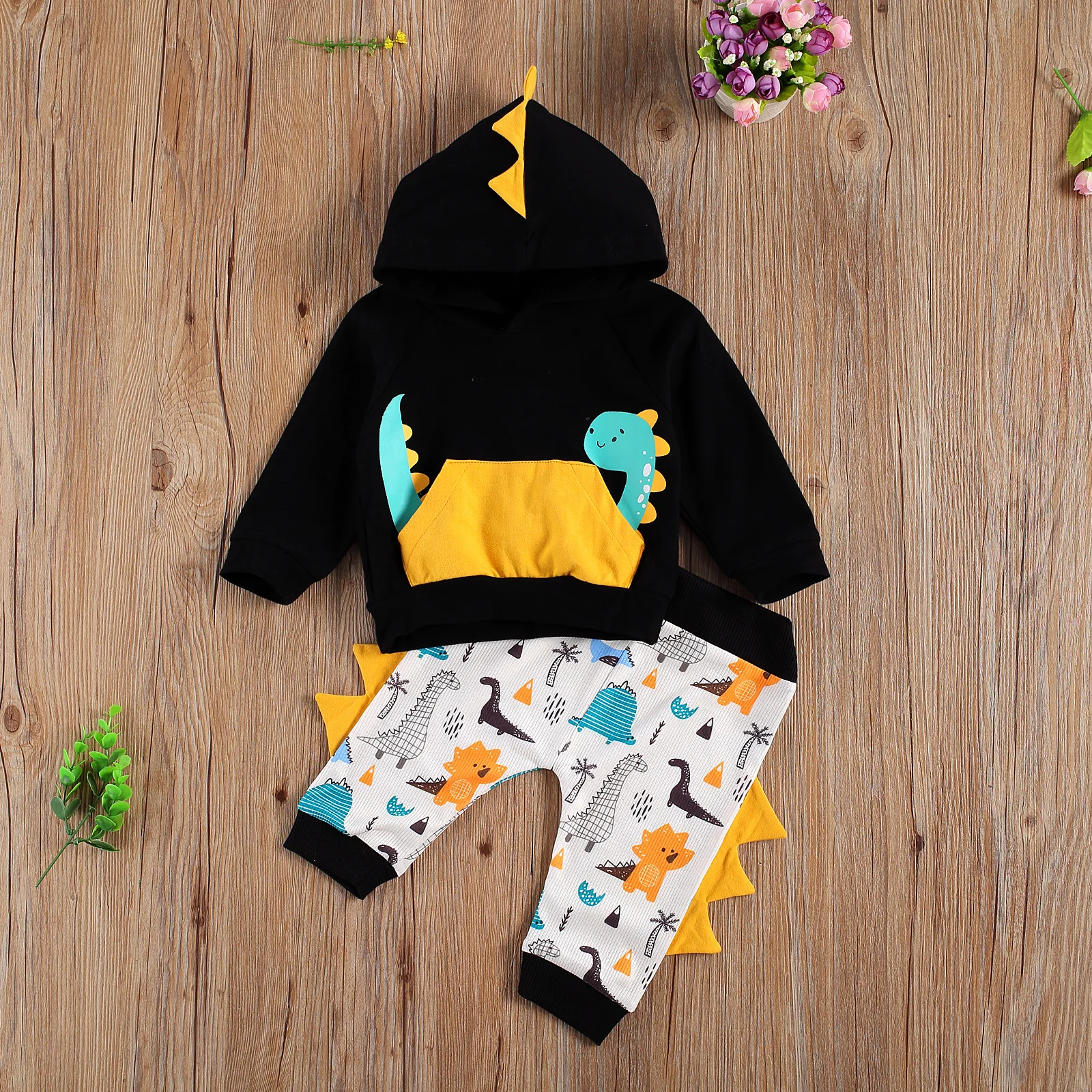 Для малышей, для маленьких мальчиков одежда с динозаврами с печатным рисунком и длинным рукавом, Повседневный пуловер свободного кроя для мальчиков, комплект со штанами и топами, одежда для девочек, наборы осенней одежды