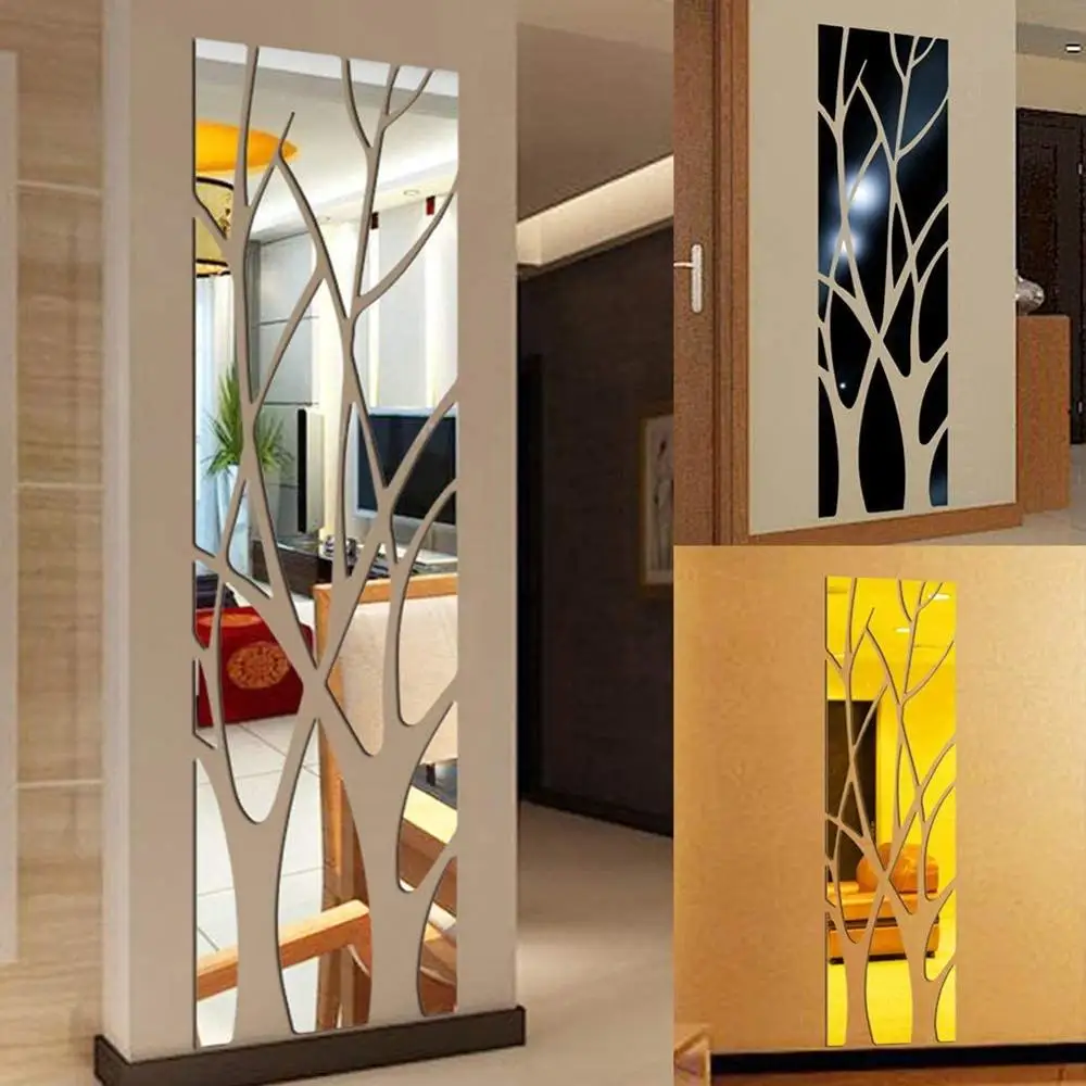 Зеркальные 3D наклейки на стену, самоклеящиеся съемные акриловые настенные наклейки сделай сам с узором в виде ветвей дерева, для гостиной, спальни, дивана
