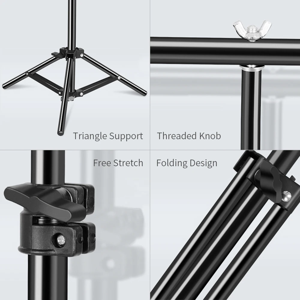 1. Высококачественный алюминиевый сплав, стабильная структура для сильной поддержки.2. Легкий вес, компактный, портативный и тонкая работа.3. Подходит для муслина, холста и бумажных фонов.4. Быстро установить и разобрать в считанные минуты.Материал: Алюминиевая Подставка для фона