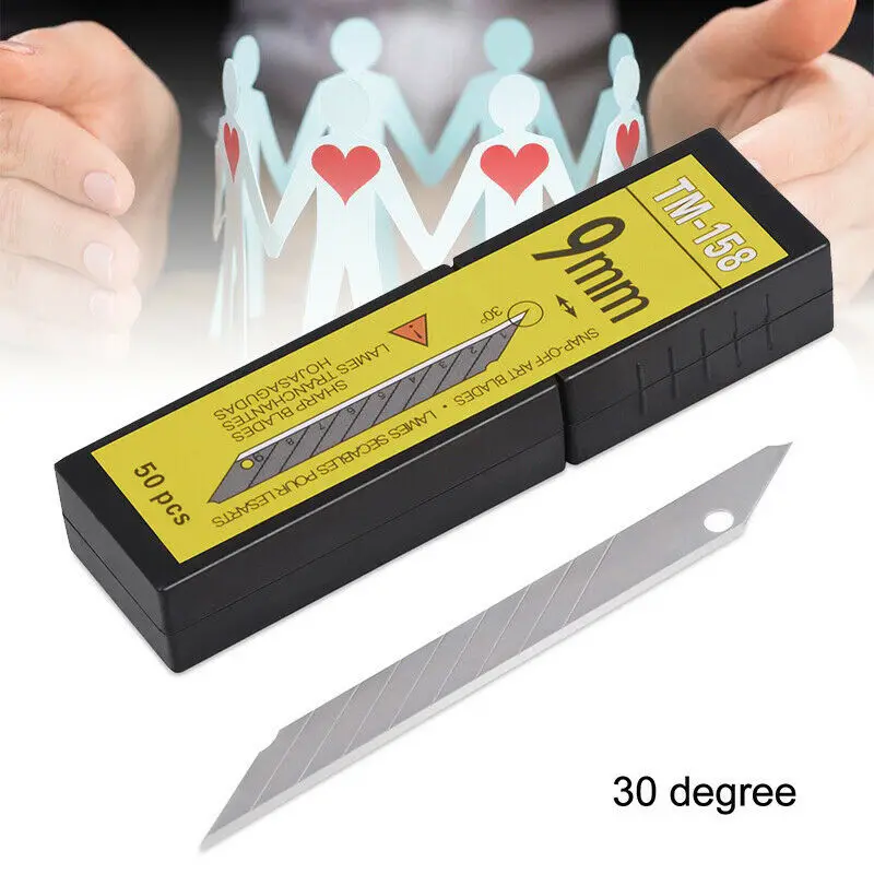 9 мм 50 шт. 30 градусов защелкивающийся нож Лезвие Автомобильная наклейка Инструменты для резки бумаги виниловая пленка сменные лезвия из нержавеющей стали