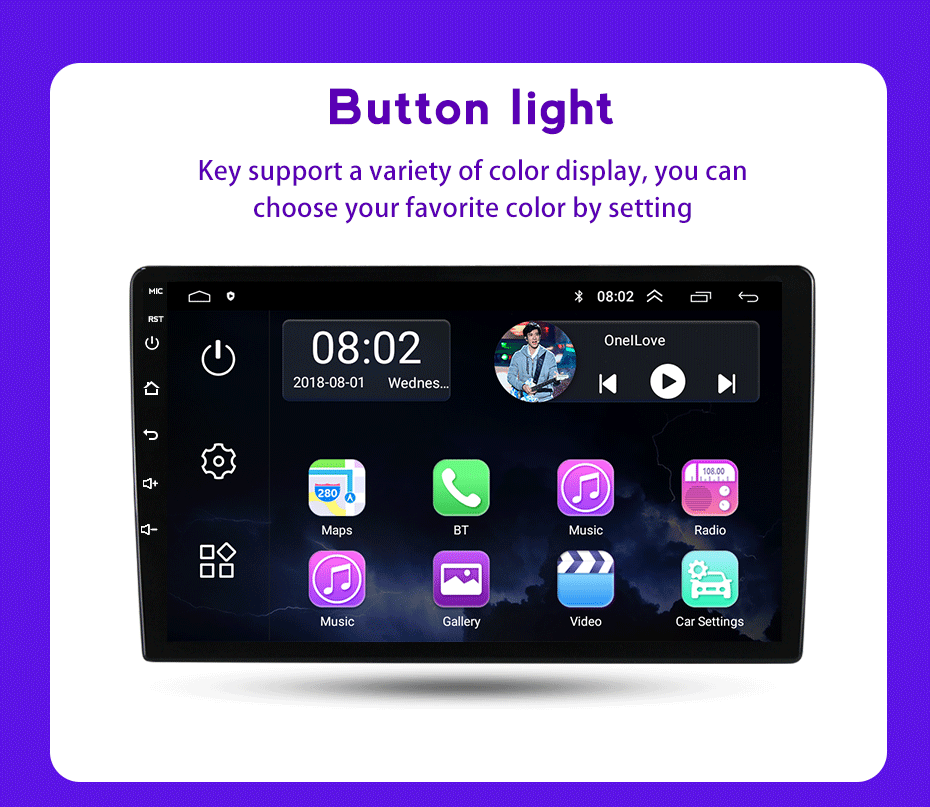 1080p видео воспроизведение, Поддержка оригинальных кнопок рулевого колеса автомобиля, поддержка встроенного микрофона, Bluetooth,WIFI,