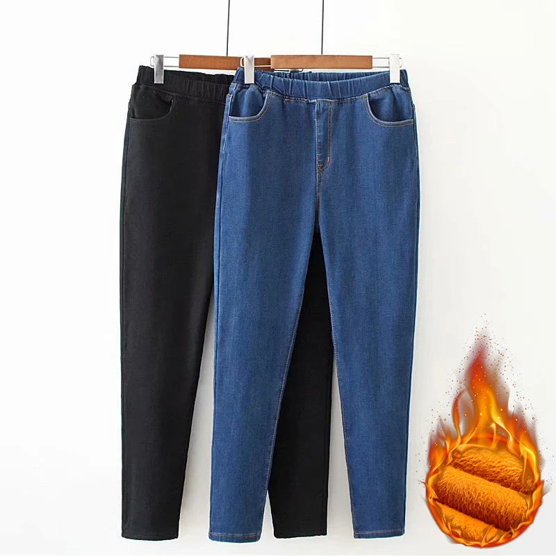 Джинсы-карандаш женские, зимние, теплые, с высокой талией, эластичным поясом, обтягивающие, с вельветом, эластичные облегающие джинсы, 5XL, размера плюс