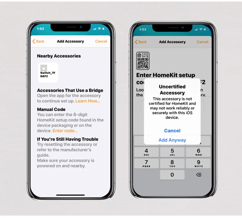 A) для настройки не требуется концентратор: в любое время в любом месте немедленно Начните управлять переключателем с помощью быстрой и простой настройки с помощью Wi-Fi на совместимом устройстве Apple iOS с приложением Apple Home, B) Голосовое управление с Siri: Управляйте переключателем с помощью голосовой интеграции через Siri, попросите Siri включать или выключать и многое другое. C) работает с Apple HomeKit, для настройки не требуется концентратор. D) он работает с Apple HomeKit, так что вы можете легко управлять подключенным переключателем с помощью Siri на iPhone, iPad, iPod touch или Apple Watch. Нет необходимости устанавливать другое приложение. E) Интеллектуальный таймер автоматически включается после установки таймера для этого переключателя, который необходим для ежедневного расписания, и обеспечивает удобный и интеллектуальный образ жизни Советы-приложение При подключении к смарт-лампе убедитесь, что вы используете Wi-Fi 2,4 ГГц. И Wi-Fi должен быть определяемым статусом. Многие маршрутизаторы имеют сеть 5 ГГц и 2,4 ГГц, и ваш телефон всегда будет автоматически подключаться к сети 5 ГГц. Итак, вам необходимо полностью выключить сеть 5 ГГц, перейдя в настройки маршрутизатора (введите IP-адрес маршрутизатора в свой браузер, обычно что-то вроде 192.168.1.1), вынуждение вашего телефона подключиться к сети 2,4 ГГц.