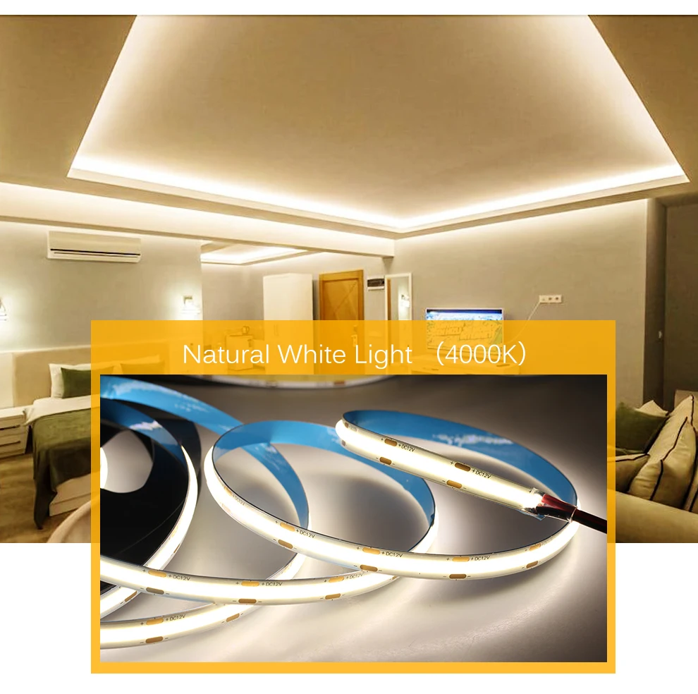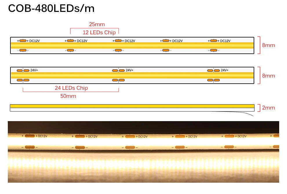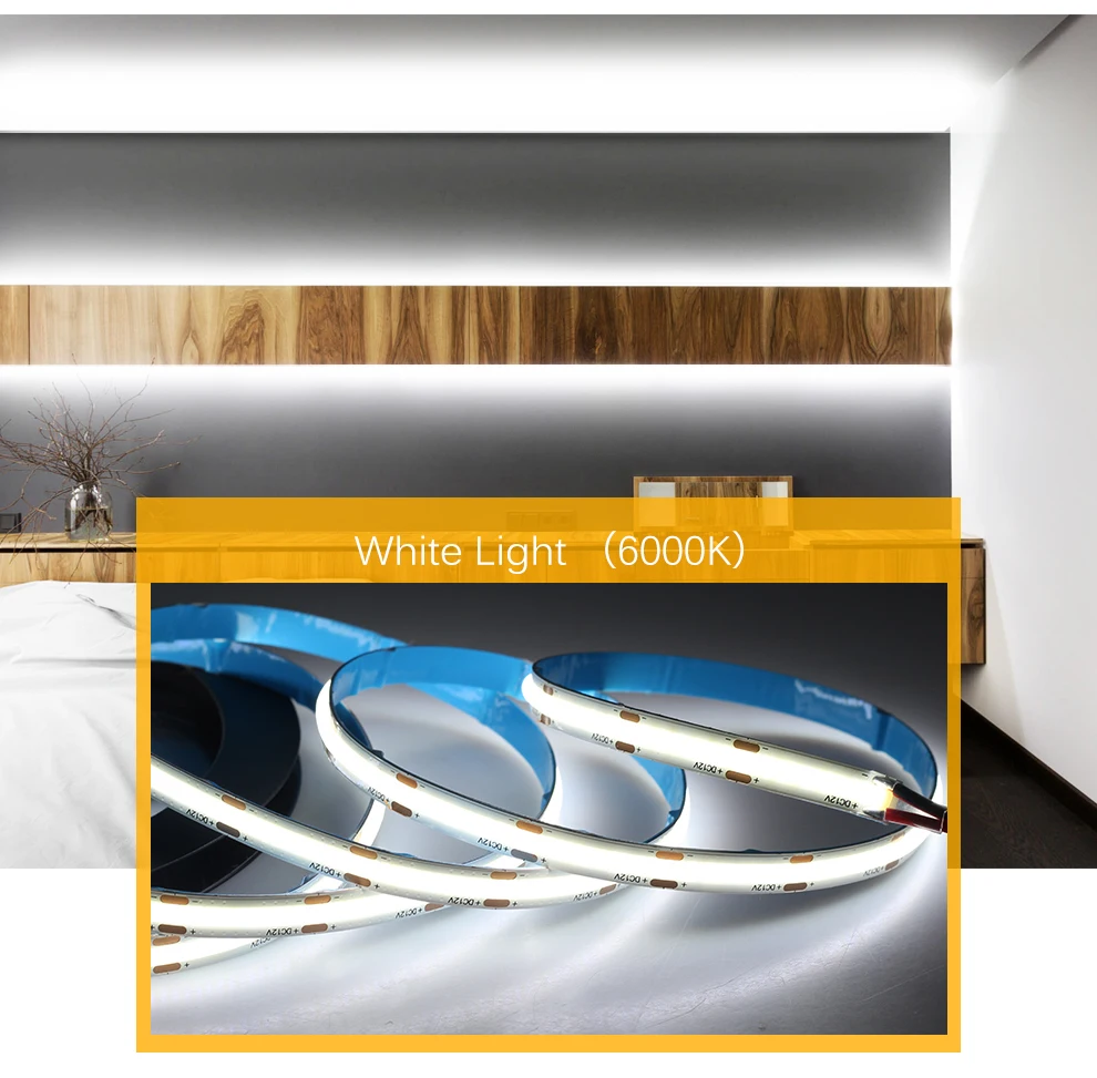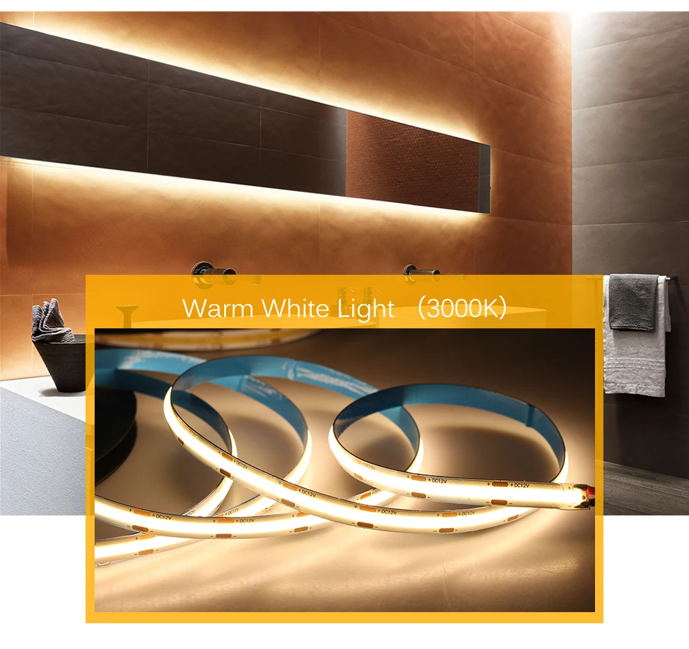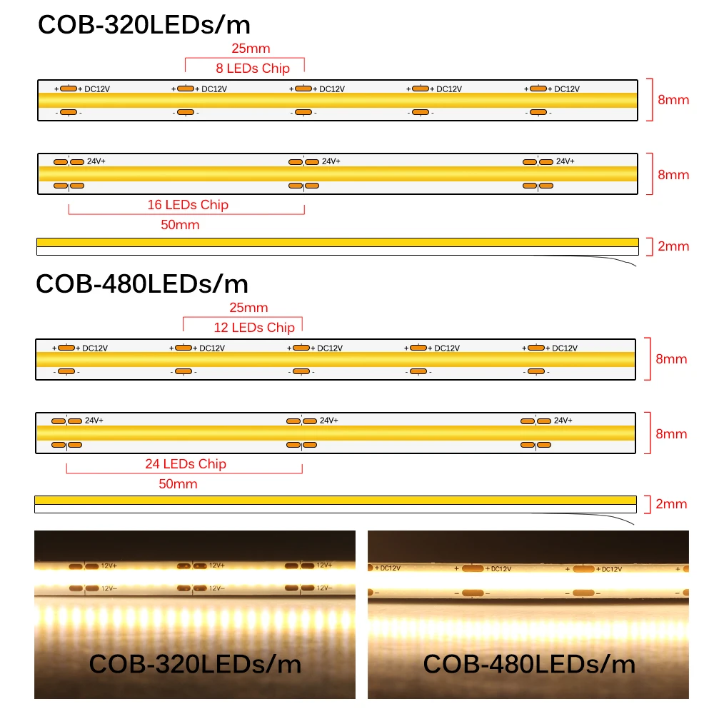 Светодиодная лента COB 320, 480 светодиодов, 8 мм, высокая плотность, ФОБ, COB, s Ra90, 3000K, 4000K, 6000K, Светодиодная лента 12 В, 24 В, 5 млот