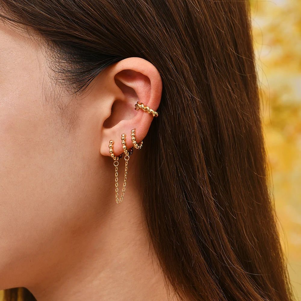 Preciosos son super pequeñitos y muy dorados. Quedan muy pegaditos a la oreja. Son tal cual salen en la foto. Sin duda volvere a pedir mas para todos los agujeros de mis orejas.