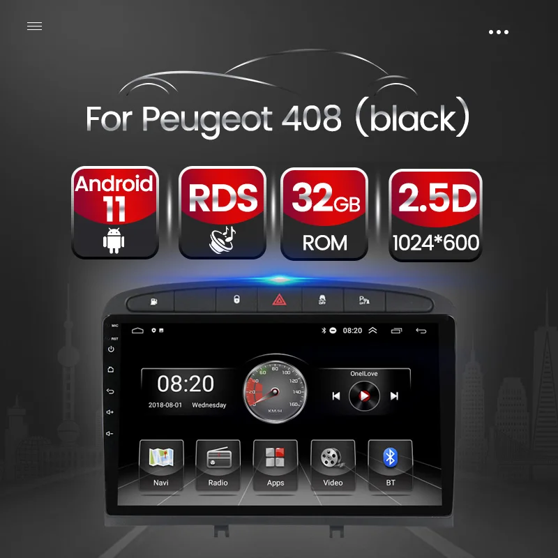 9-дюймовый 4-ядерный автомобильный радиоприемник Android 11, видеоплеер с GPS для Peugeot 308 408 2010-2016, стерео, RDS, FM-навигация, Wi-Fi, BT, без Dvd