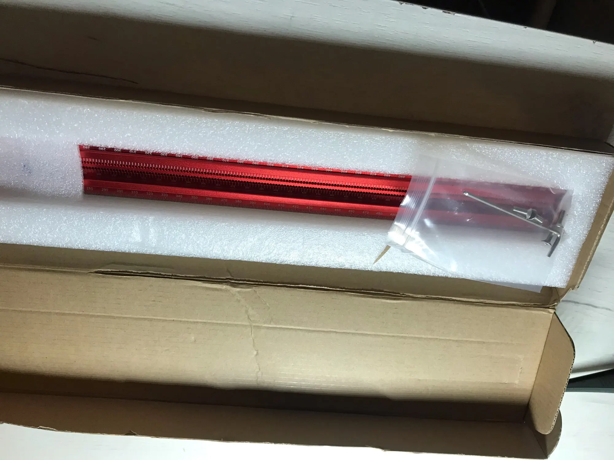 Визуально линейка изготовлена очень хорошо. При проверке 600мм шкалы линейки поверочной линейкой обнаружено расхождение в большую сторону с одной стороны 1,5 мм, с другой стороной 1мм. Но за такие деньги продукт достойный. Доставка компанией DPD очень долгая, по прибытию товара в Санкт-Петербург доставка до двери переносилась много раз.