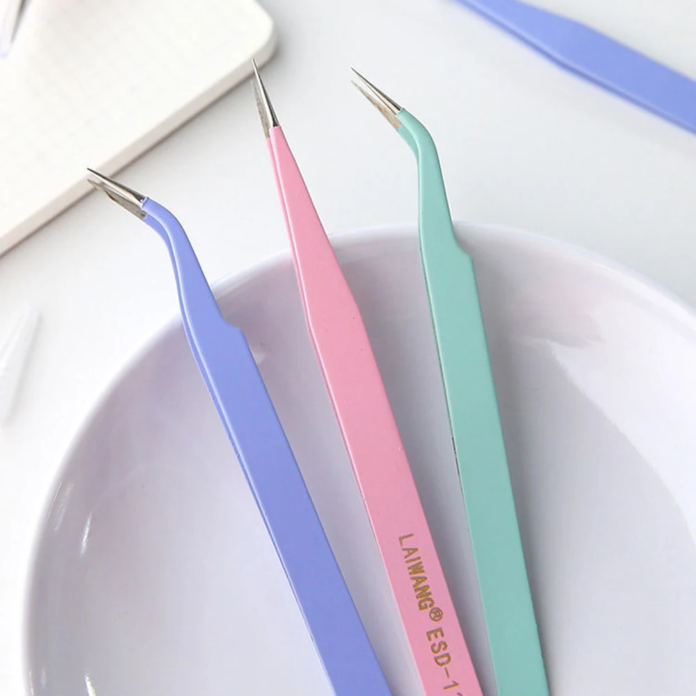 Цветной пинцет с прямым и изогнутым кончиком, тонкий Пинцет из нерж...