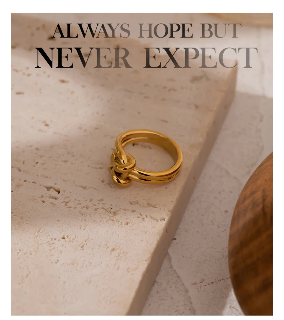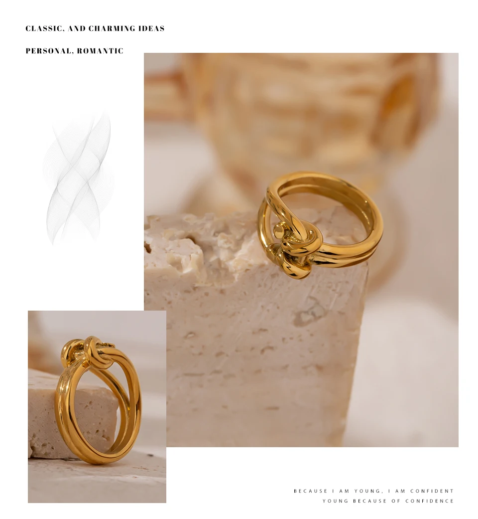 Yhpup модный галстук круглый полый Кольцо 18 K Нержавеющая сталь высокое качество ювелирные изделия темперамент золотой металл кольцо на палец для вечеринки Гала подарок