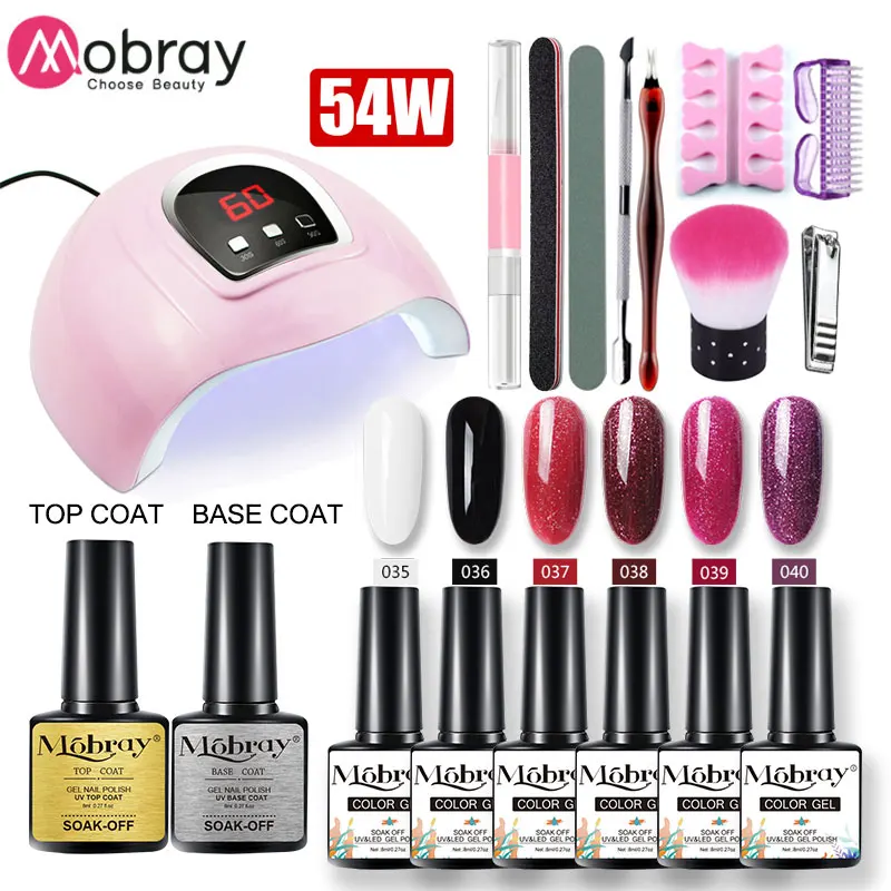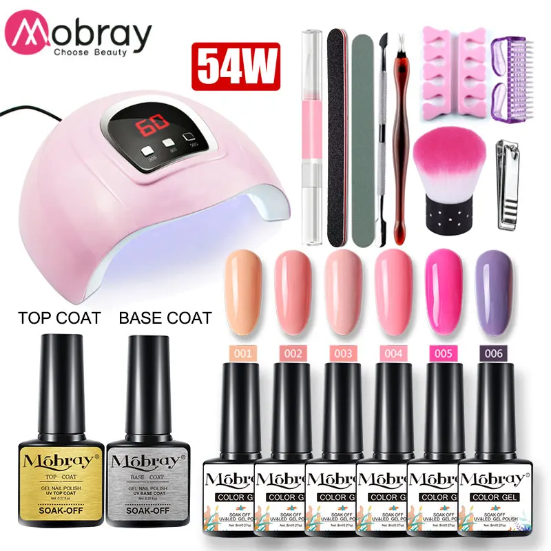 Mobray наборы для гелевых ногтей с лампой, УФСветодиодная лампа, Сушилка для ногтей, 6 шт., набор для базового и топового покрытия, набор для дизайна ногтей