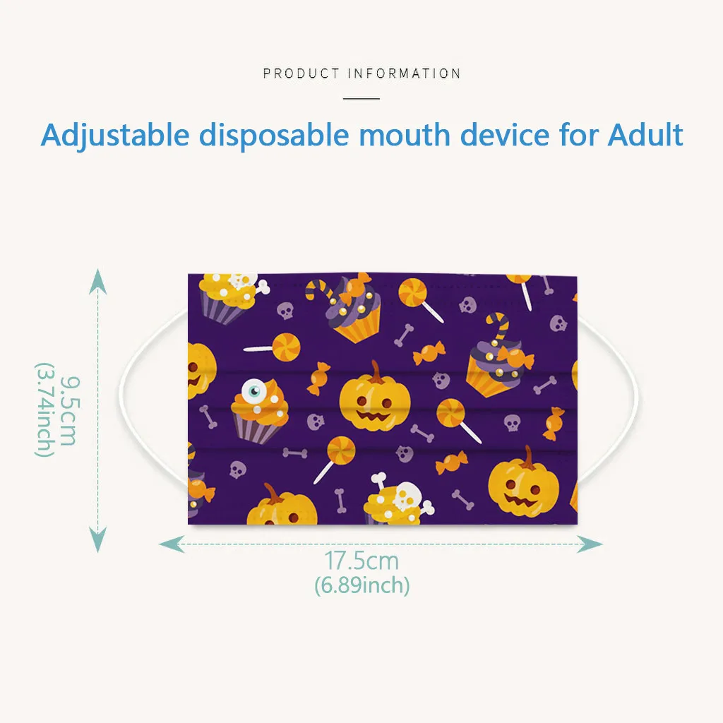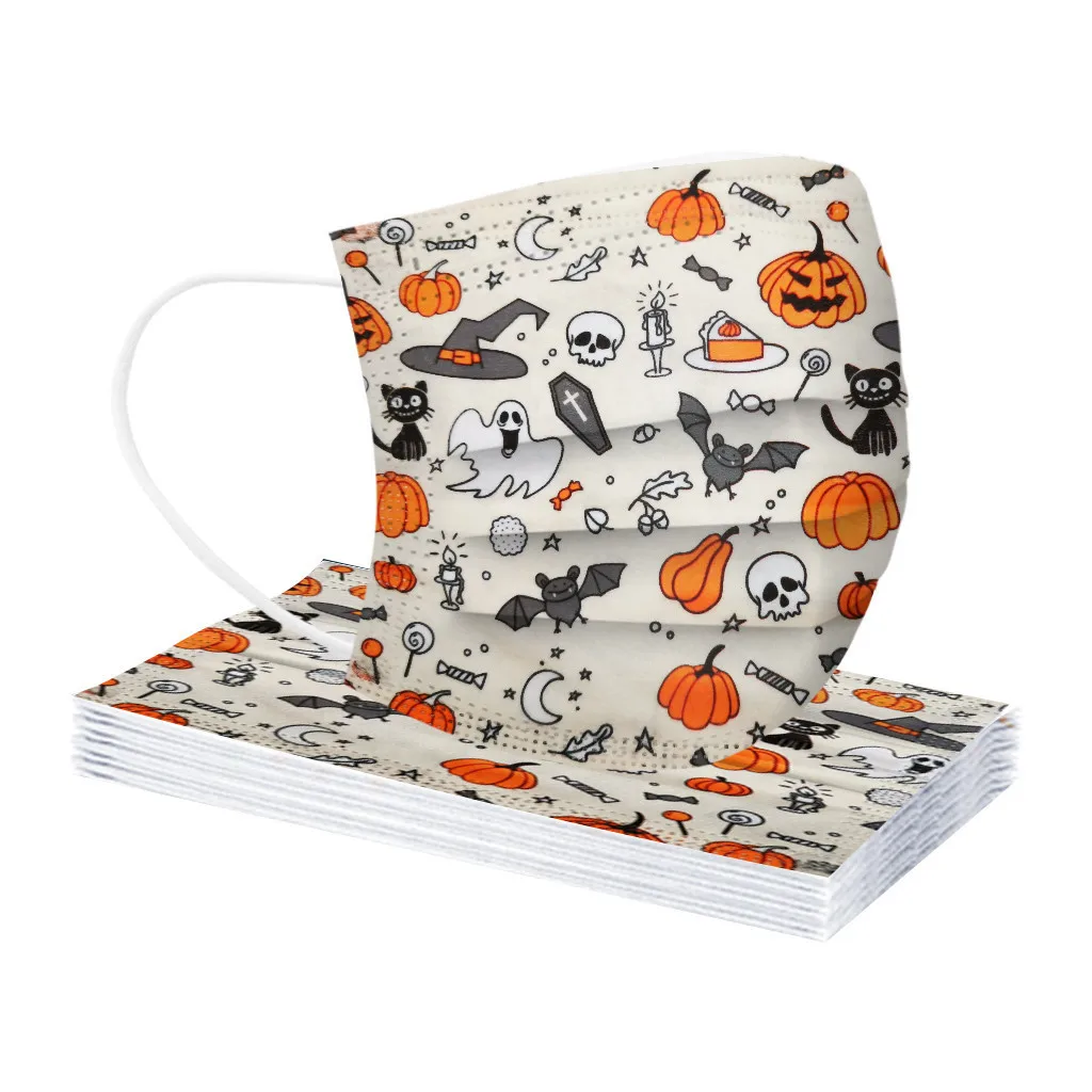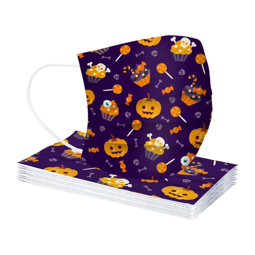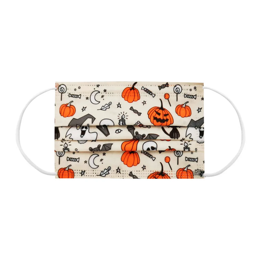 Маска тыквенная одноразовая для Хэллоуина, Нетканая, 3-слойная, 50 шт.