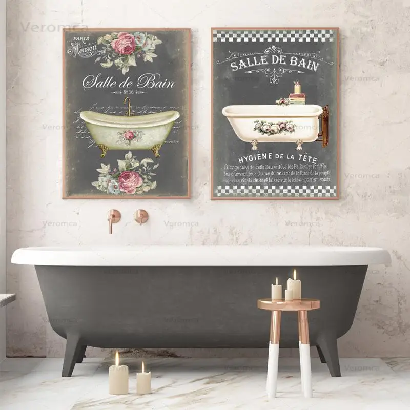 Картины для украшения ванной комнаты, винтажные постеры с изображением потертой мелкой стены, холста