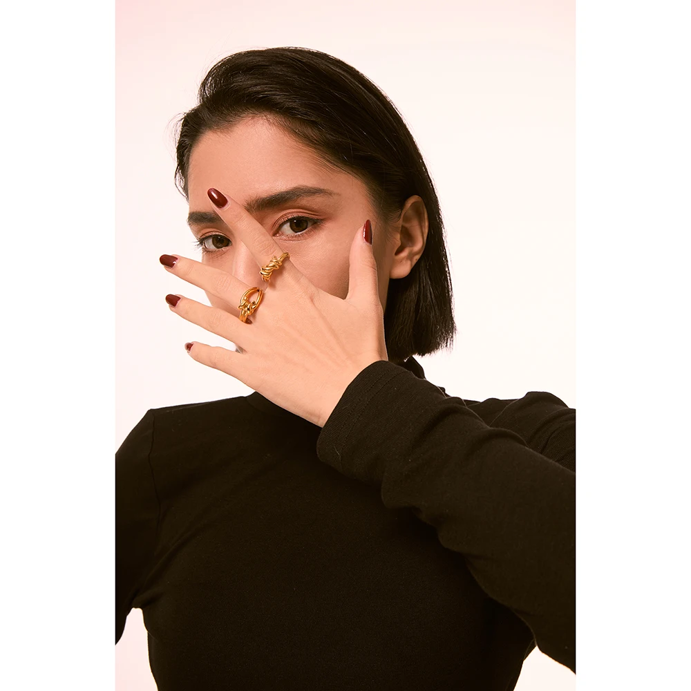 Простое Золотое кольцо Yhpup с галстуком, женское ювелирное изделие из нержавеющей стали в стиле панк, новое дизайнерское кольцо с металлической текстурой, бижутерия для праздничного подарка 2021