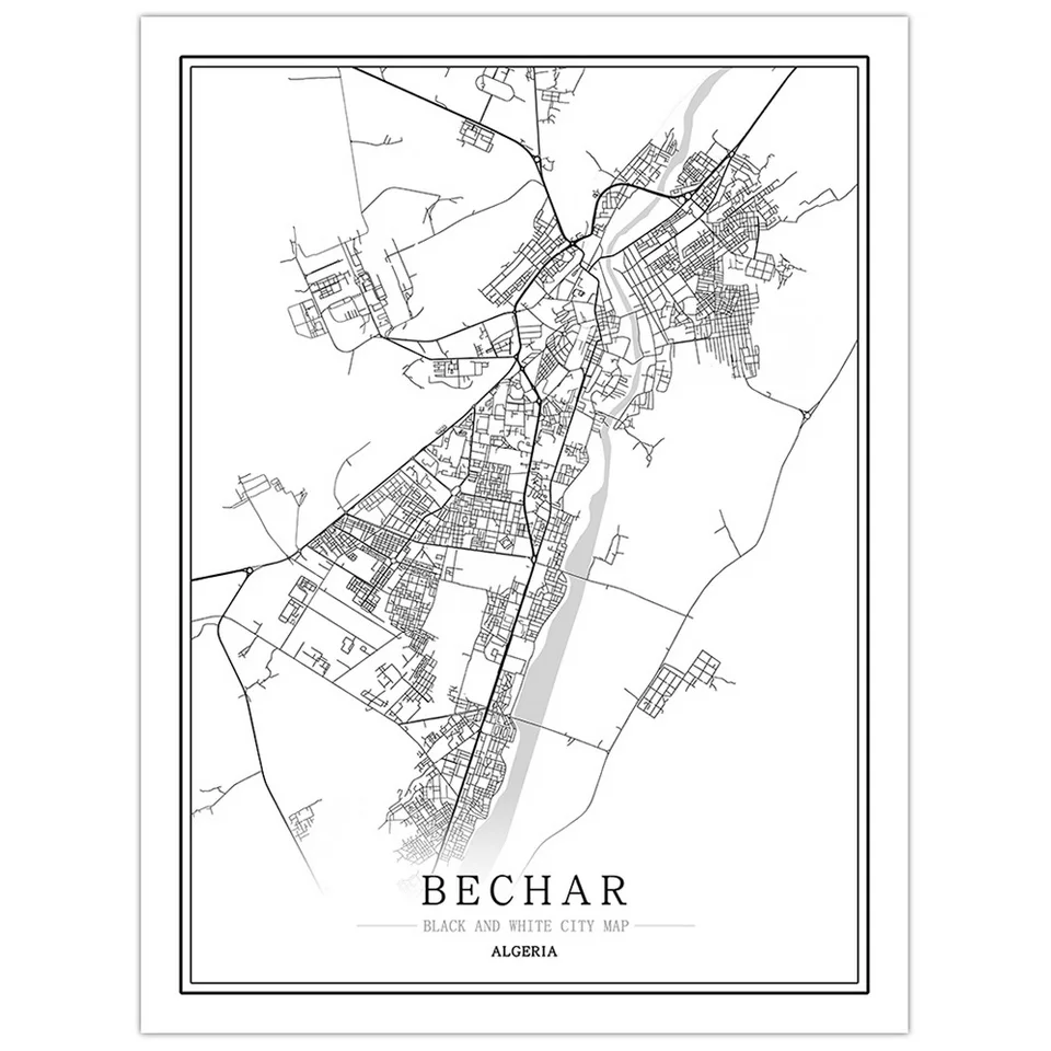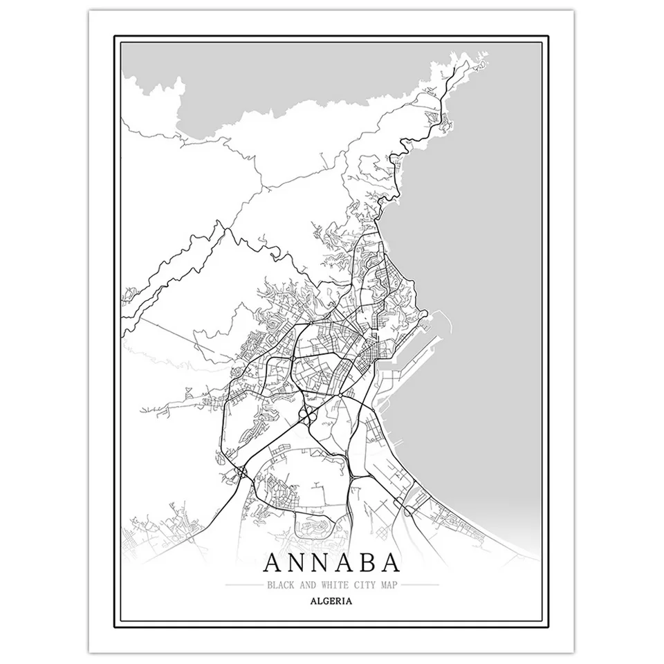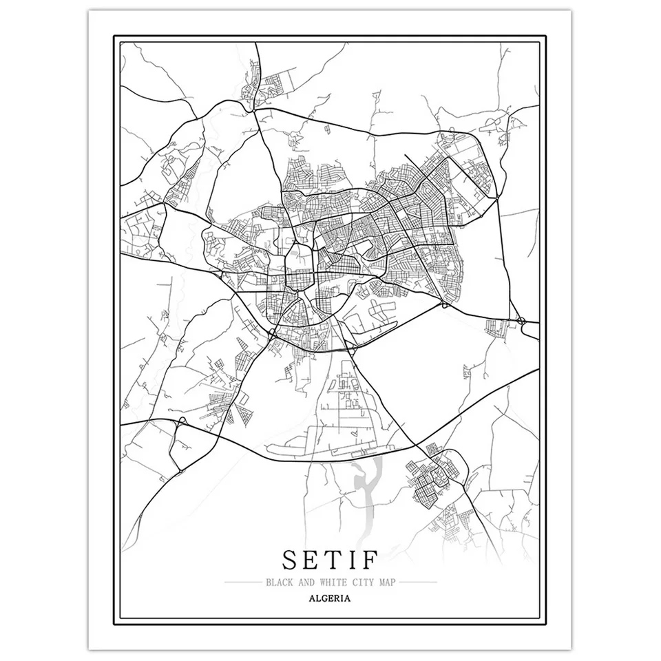 Алжирская креативная Карта города, алжирская планета, черно-белая с...