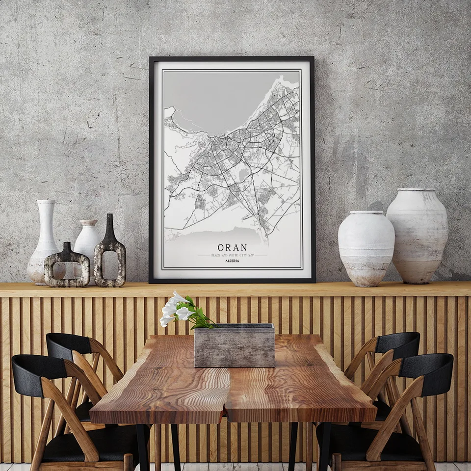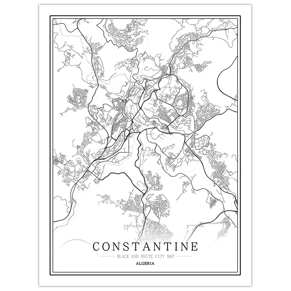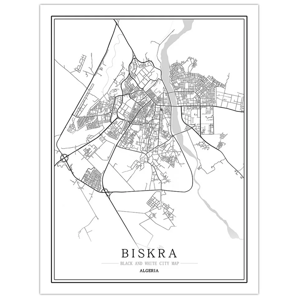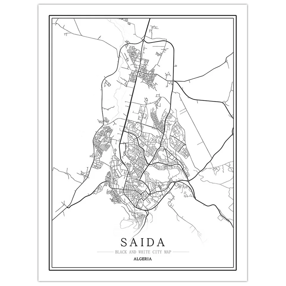Алжирская креативная Карта города, алжирская планета, черно-белая с...