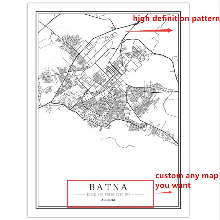 Карта на заказ, плакат, Карта города Польши, черно-белая печать, ри...
