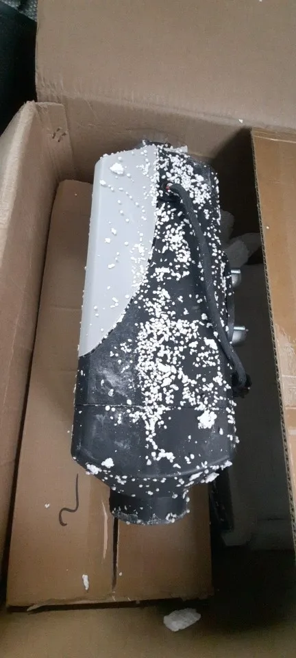 фен весь потертый, пенопласт изложенные, все потому что упаковка от 5 киловатного поэтому он болтался и крошил пенопласт . короче товарного вида нет. можно было упаковать по лучше!!!