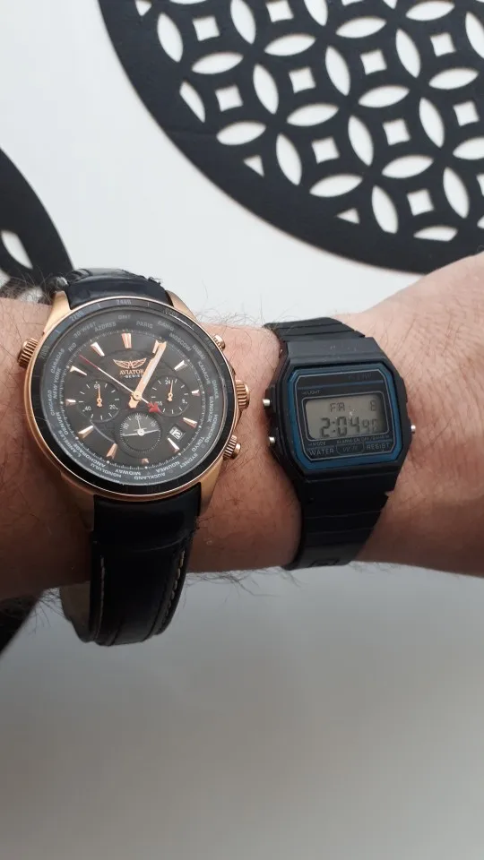 Часики маленькие, застёжка не очень, подсветка не освещает экран. Просто носить на работу.
