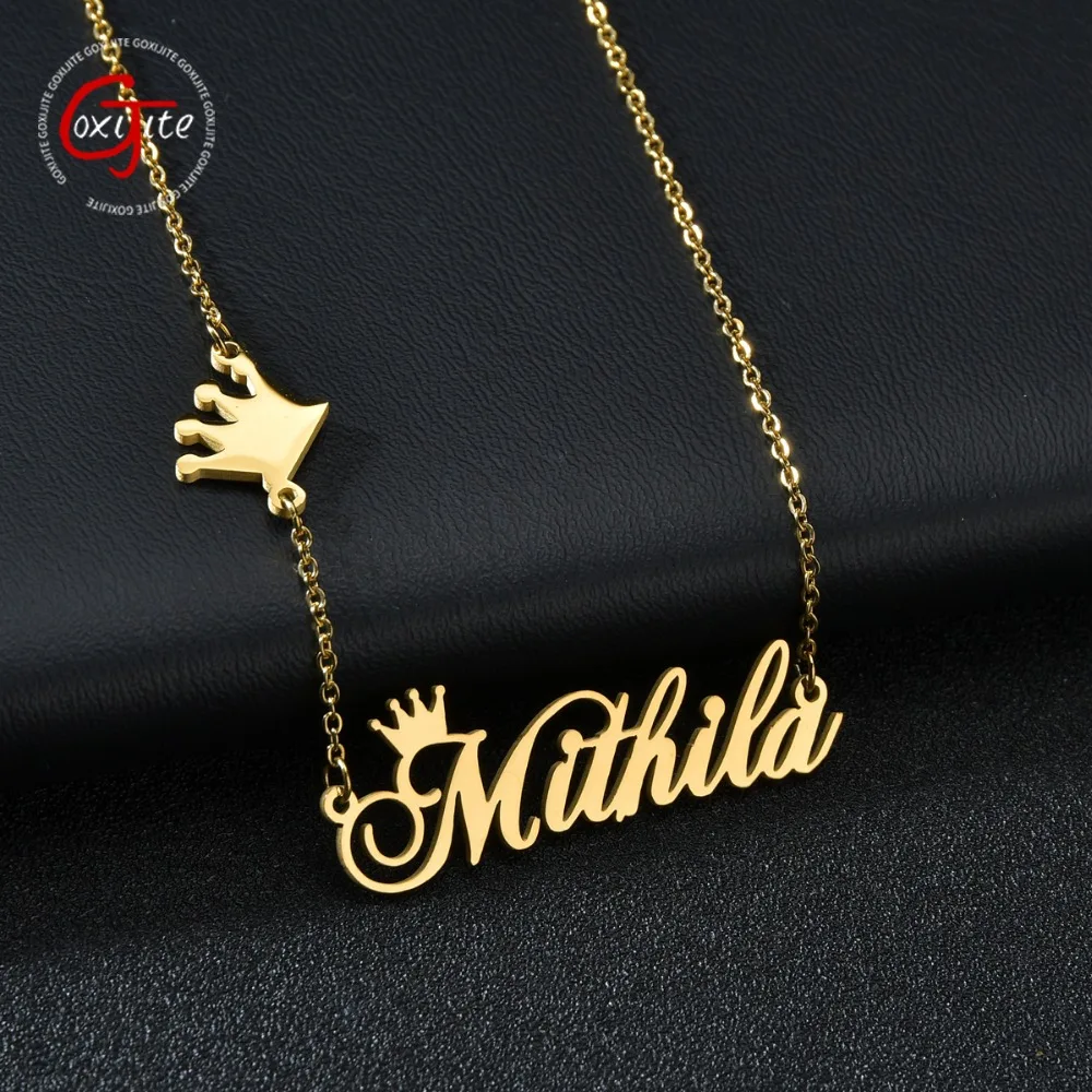Модное ожерелье Goxijite с именем на заказ с короной для женщин, персонализированное ожерелье-чокер с именной табличкой, лучший подарок