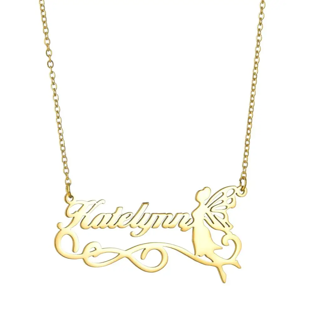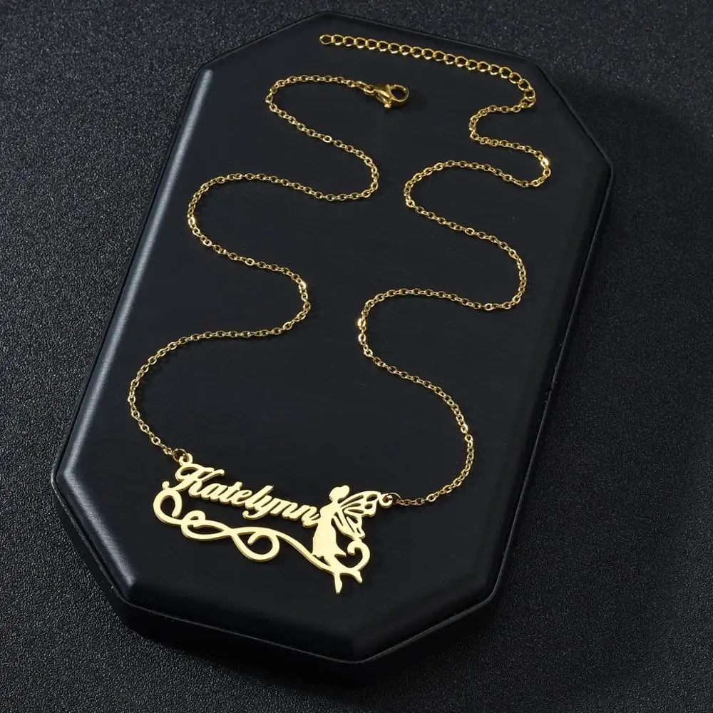 Название: ожерелье Goxijite с персонализированным именем Феи Ангела для женщин, ожерелье с золотым именем из нержавеющей стали на заказ, ювелирные изделия в подарок