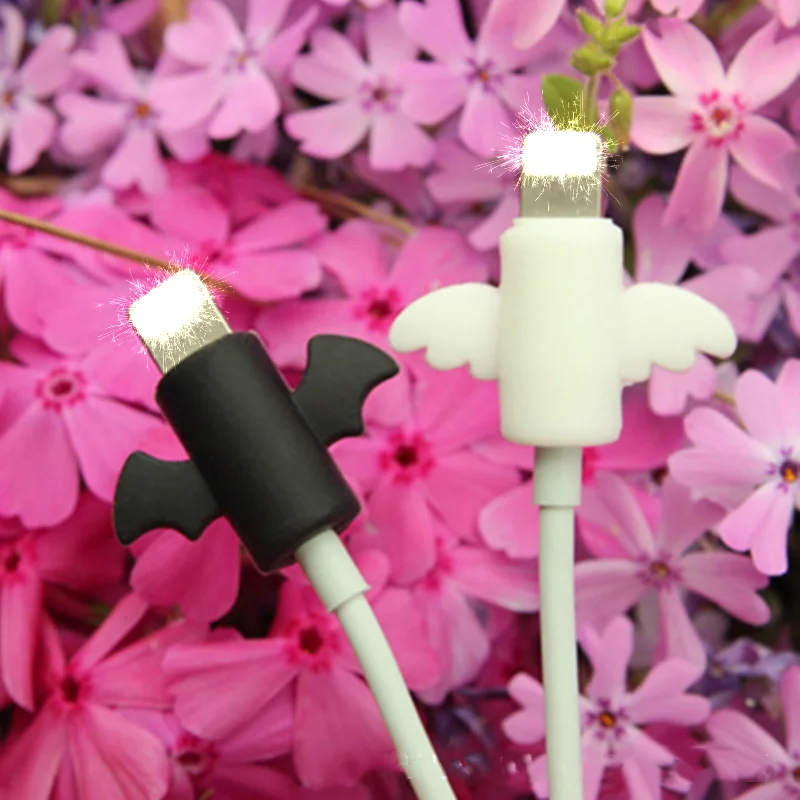 Новинка 2021, протектор кабеля с изображением ангела демона, микро-Usb устройство для намотки кабеля наушников, милый мультяшный чехол, защитный чехол, держатель провода для iPhone