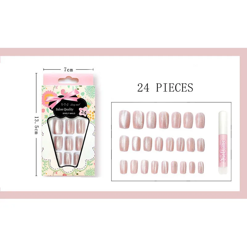24 шт.кор. солнцезащитные очки "кошачий глаз" фототерапии поддельные накладные ногти шпата кошачий глаз короткие накладные Клей для ногтей аксессуары, инструменты для маникюра, готовые гвозди