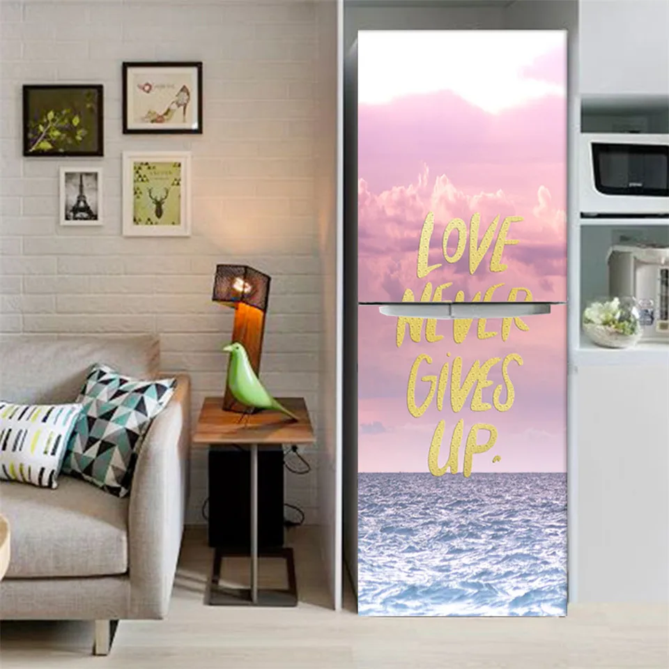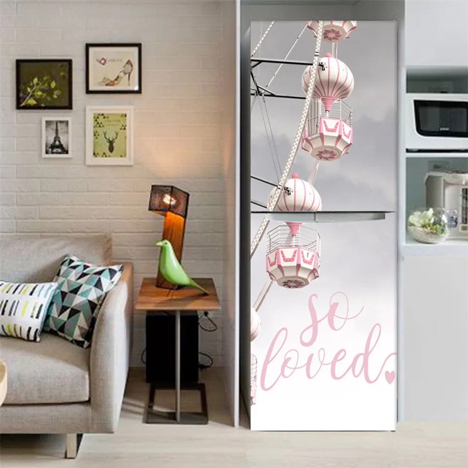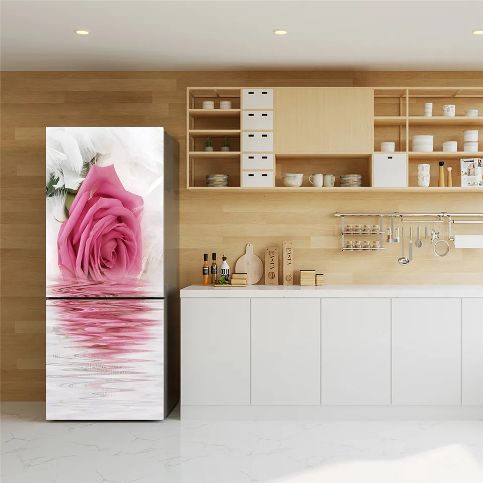 Наклейка на дверь холодильника, ПВХ, розовая роза, водостойкая
