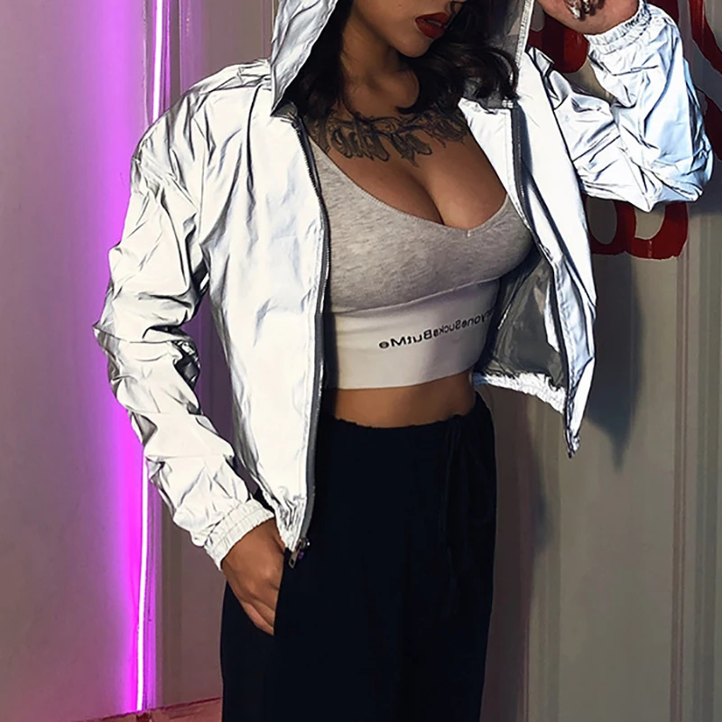 Осенне-зимняя новая Светоотражающая куртка с капюшоном, облегающая бейсбольная куртка, повседневная куртка с длинным рукавом, куртка, уличная одежда