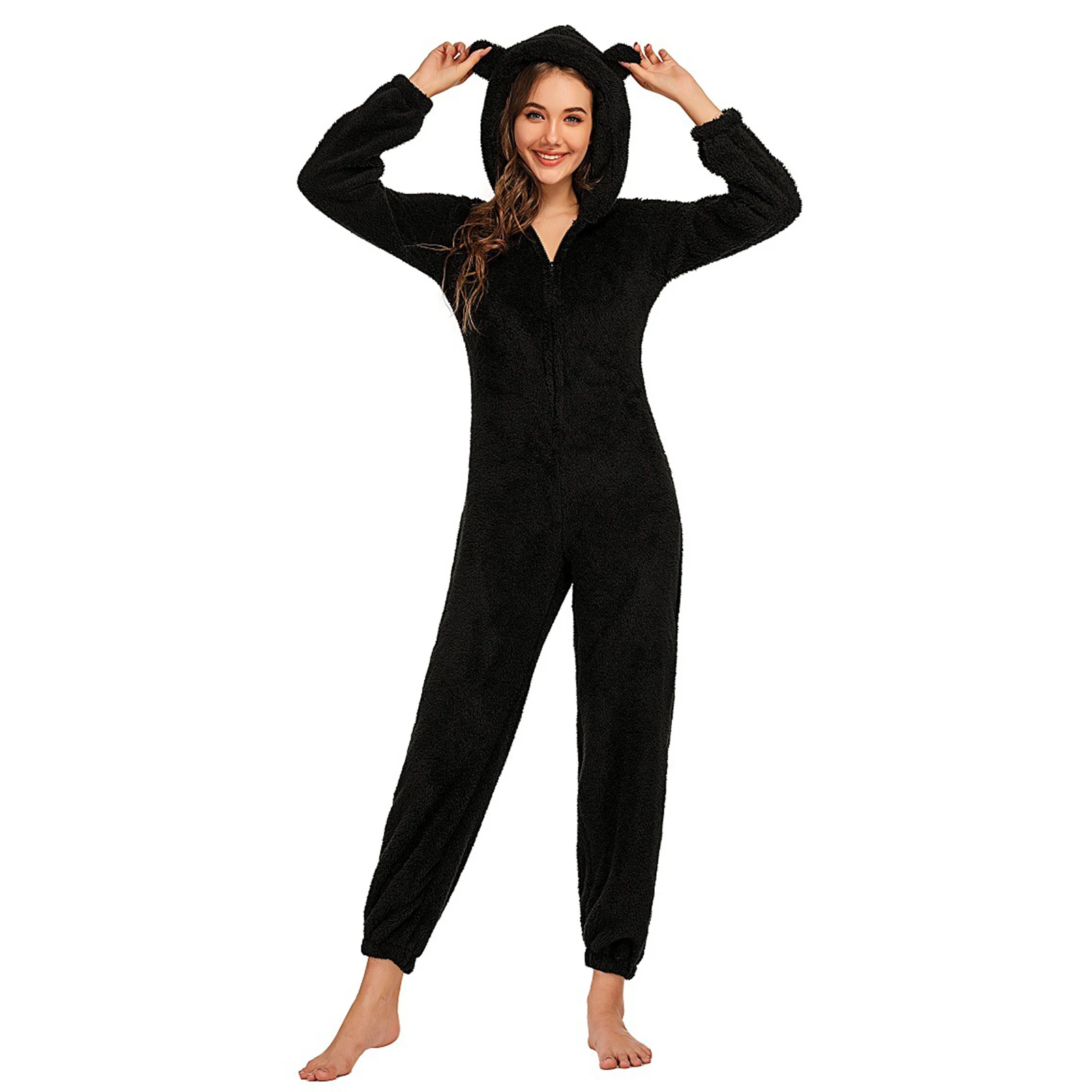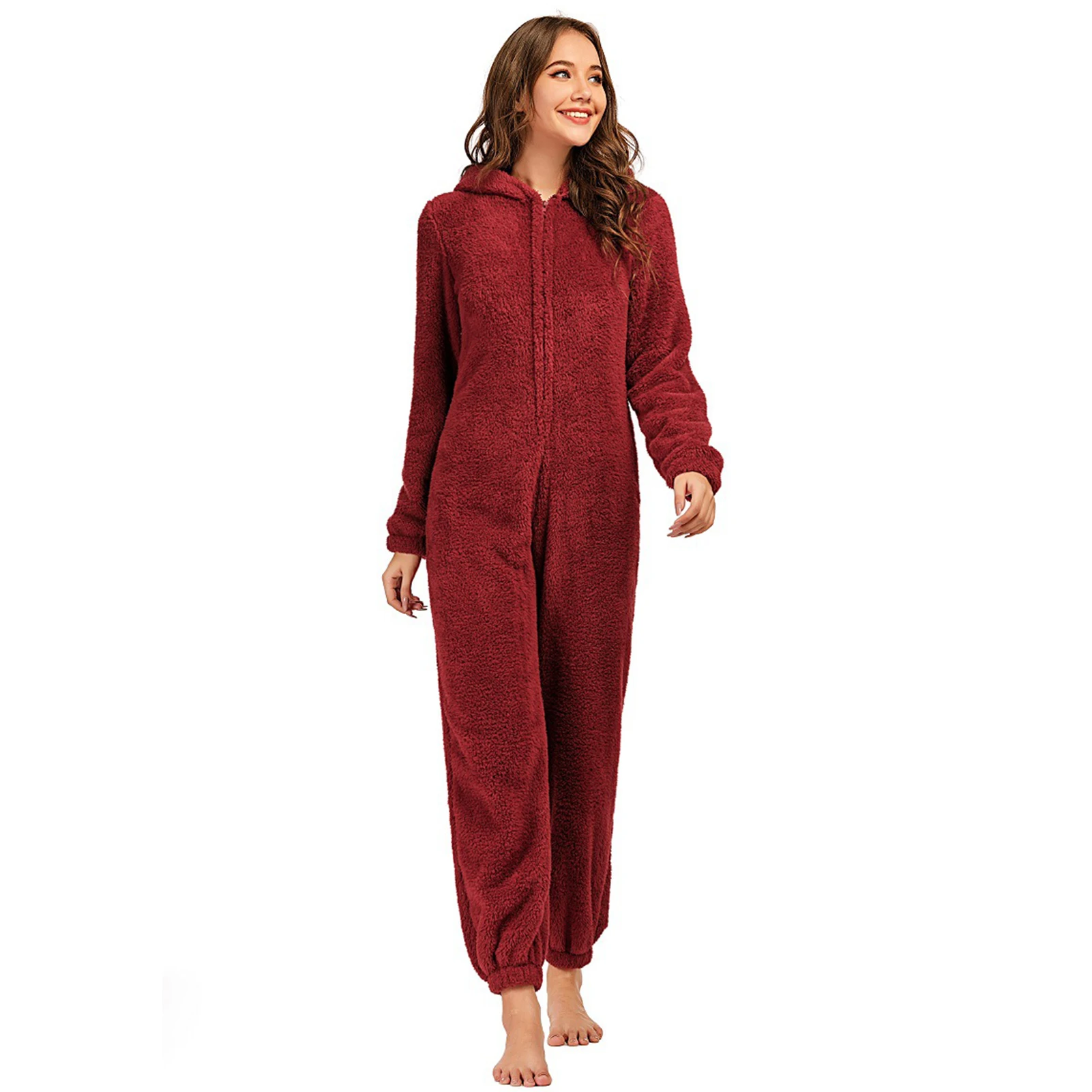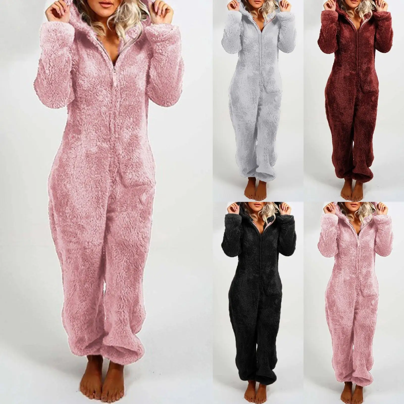Зимняя теплая Пижама для женщин один Размеры s пушистые флисовые комбинезоны, одежда для сна, комбинезон размера плюс Размеры капюшон, пижамные комплекты, для взрослых женщин