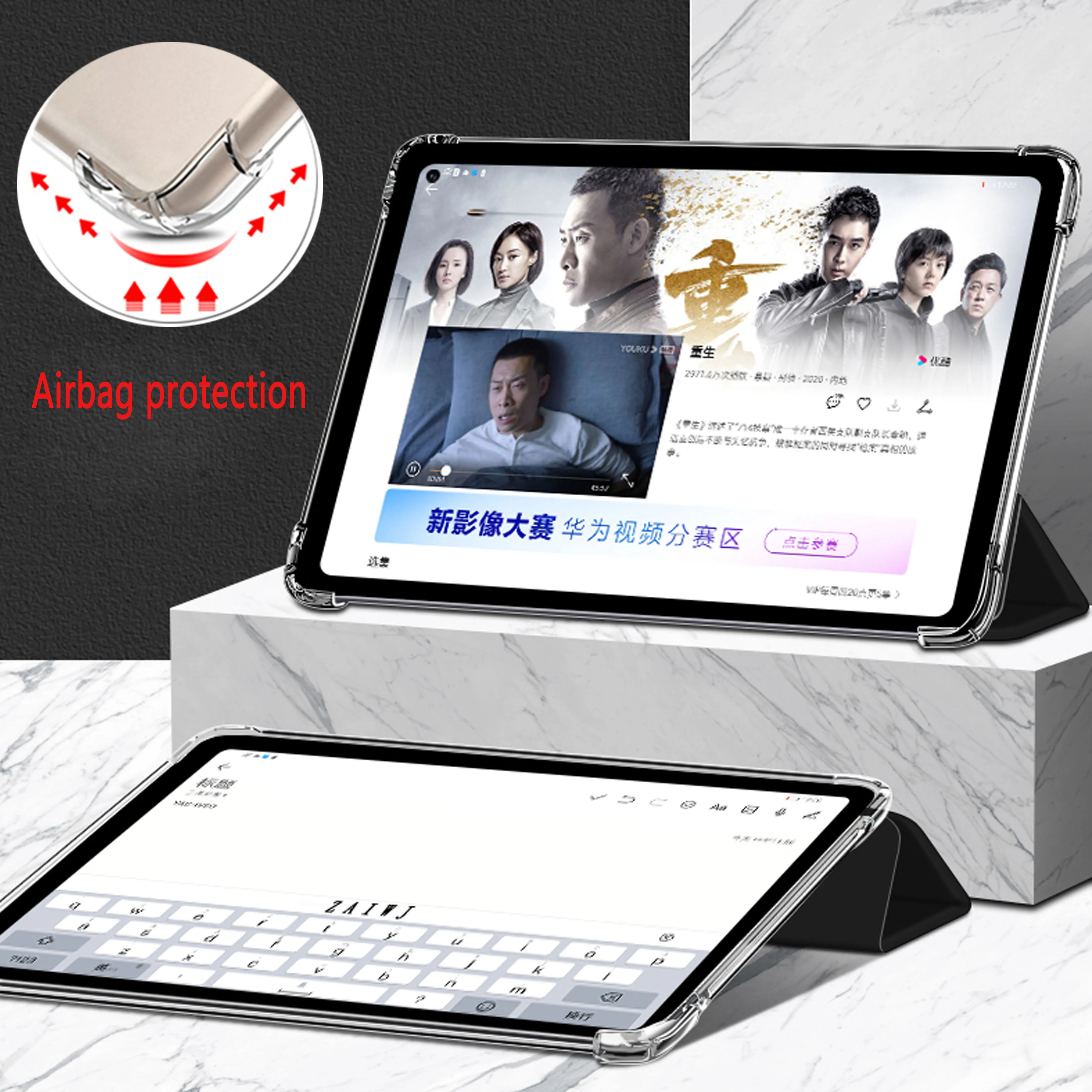 Передняя трехслойная смарт-крышка изготовлена из полиуретана и мягкого трогательного прорезиненного покрытия на внутренней стороне и внешней стороне задней оболочки, которая чувствует себя хорошо в руках и делает ее менее скользкой. Это цельный чехол, спереди и сзади не отделяется