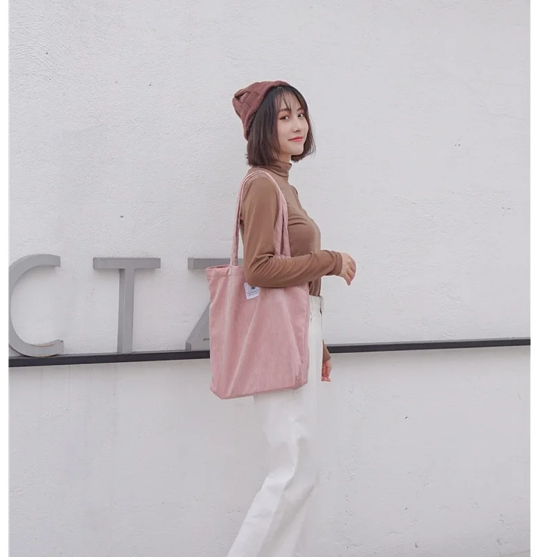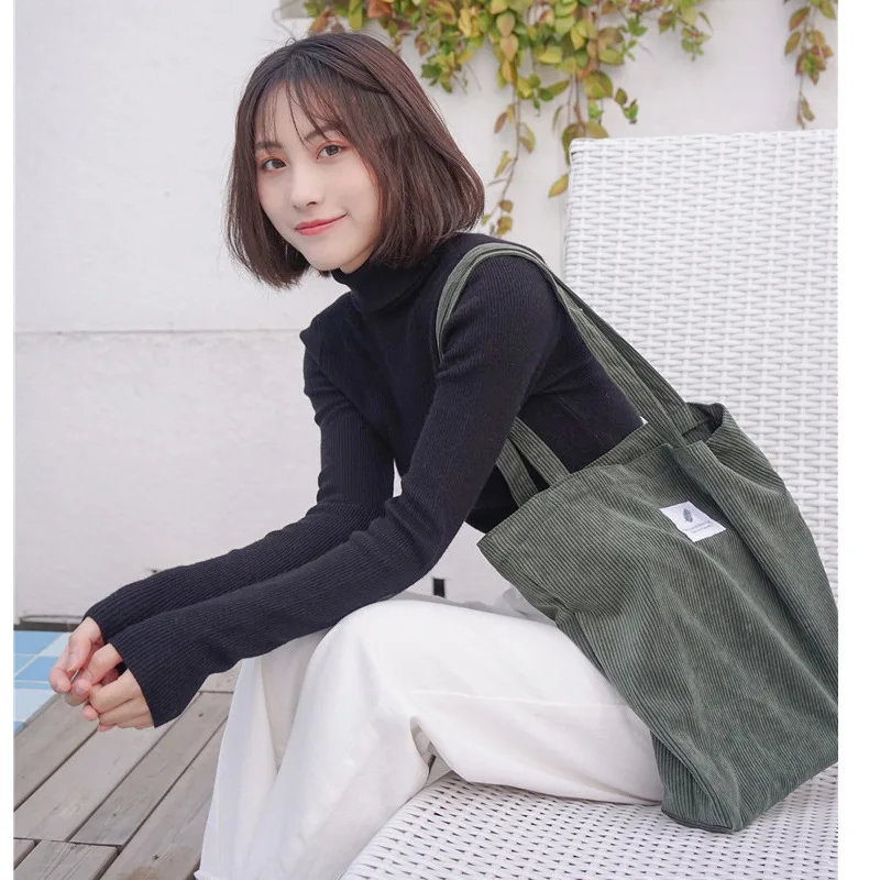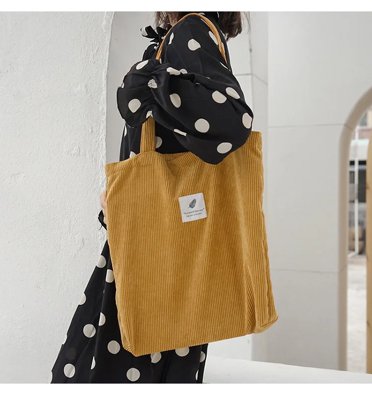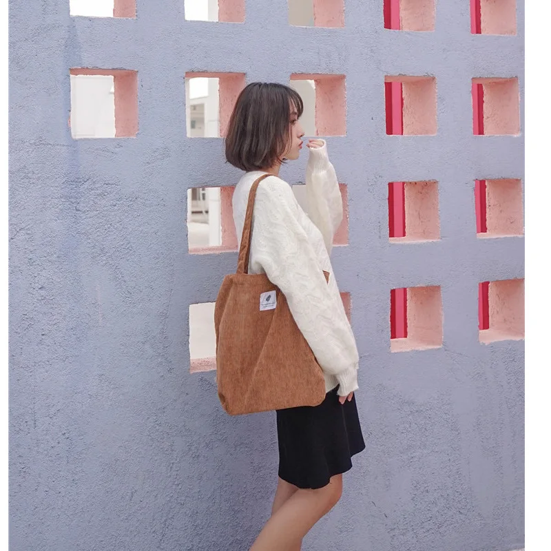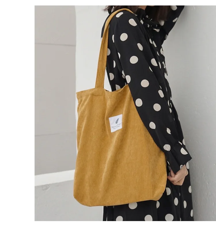 Женская Вельветовая Сумка Для Покупок, Женская Холщовая Сумка на плечо, Женская Экологичная Сумка Для хранения, Сумка Для Покупок, Женская Сумка
