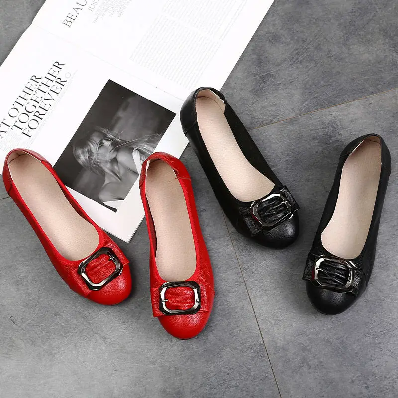 Женские балетки OUKAHUI из натуральной кожи, на низком каблуке, без...