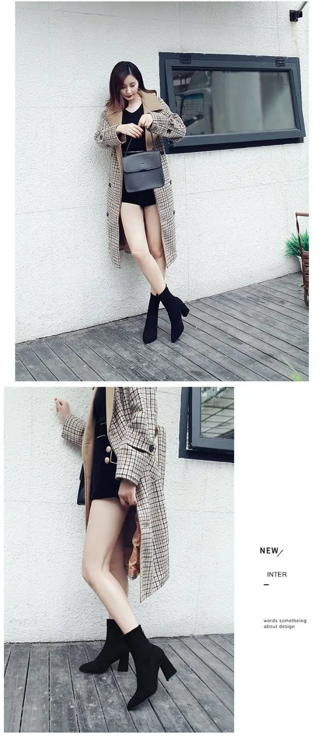 Новинка 2021, короткие женские ботинки, осенне-зимняя обувь на толстом каблуке, эластичные женские ботинки на высоком каблуке с острым носком для женщин