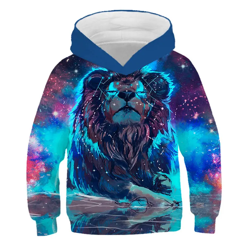 Толстовка с капюшоном для мальчиков и девочек, Свитшот со львом, ти...